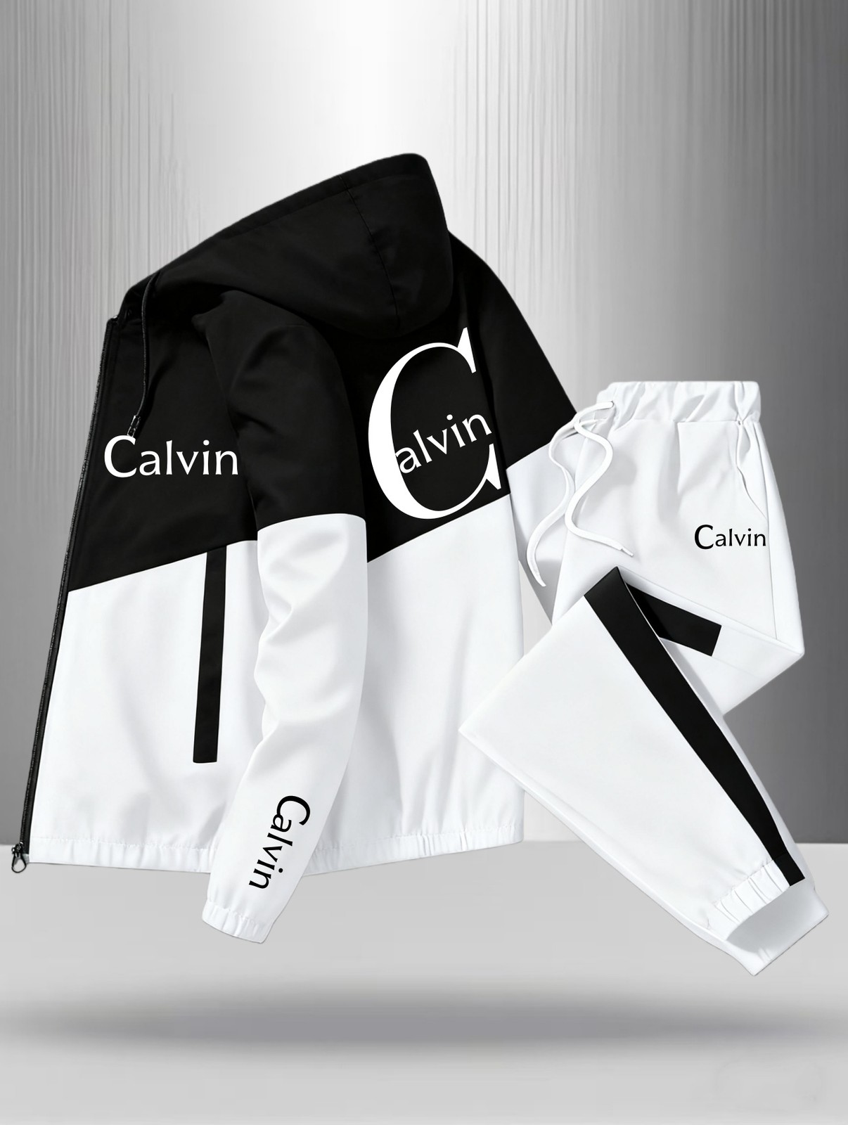 Two-piece Set. Men's Casual Sporty Hooded Jacket and Sweatpants Set, Unisex, Ava