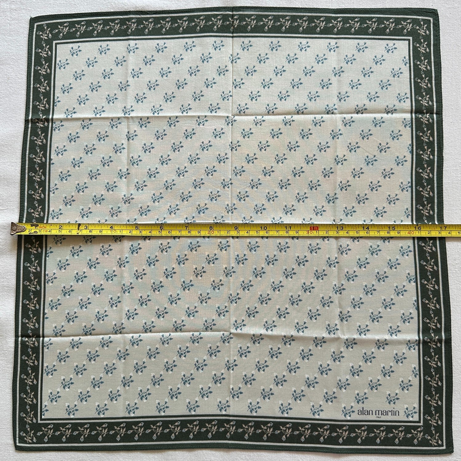 как выглядит VTG Handkerchief light Green Cotton Twigs Flower Small Pattern Pocket Square 17" фото