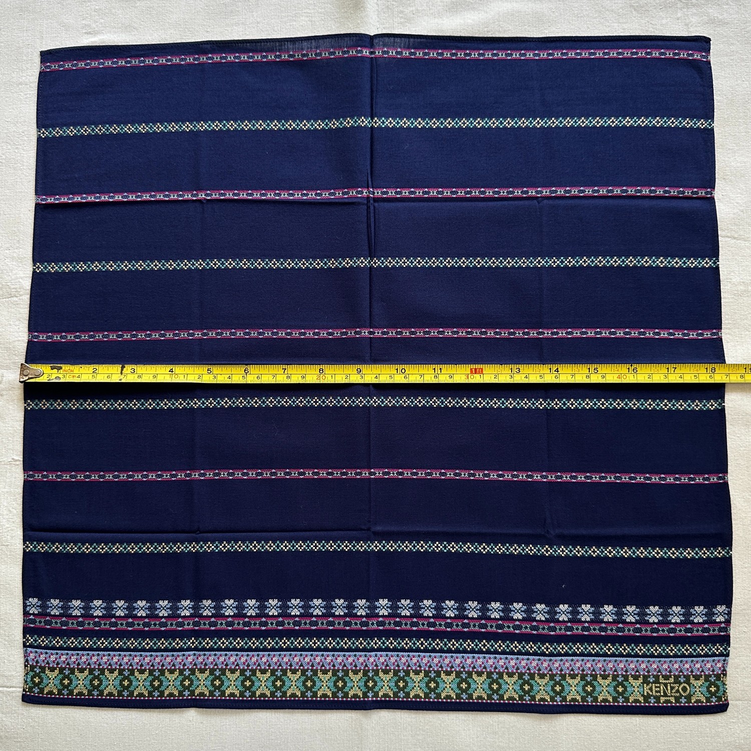 VTG Handkerchief Navy Fabric Woven Geometric Horizontal Striped Pocket Square 18