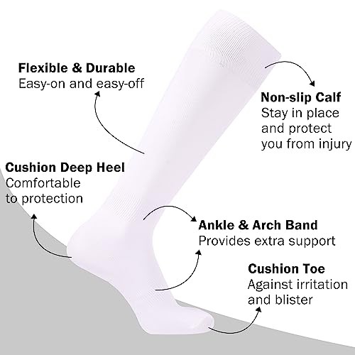 Soccer Socks, Unisex Youth Knee High Baseball Softball Football X-Large White