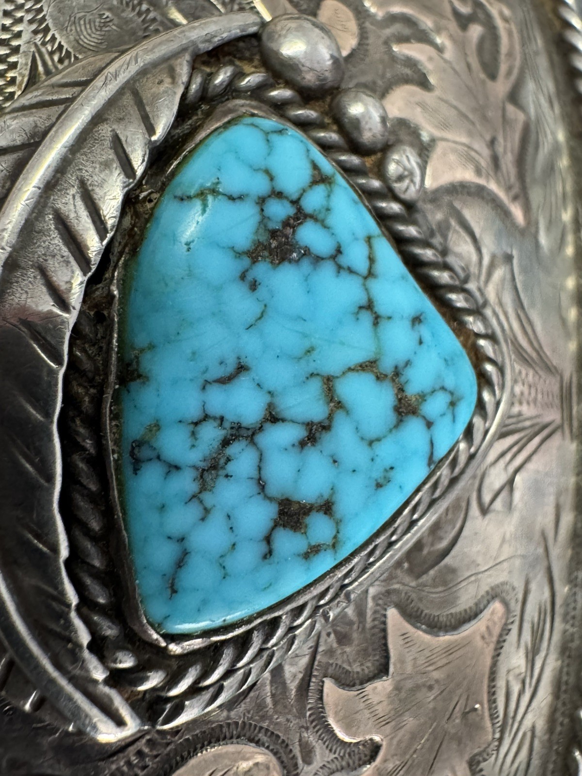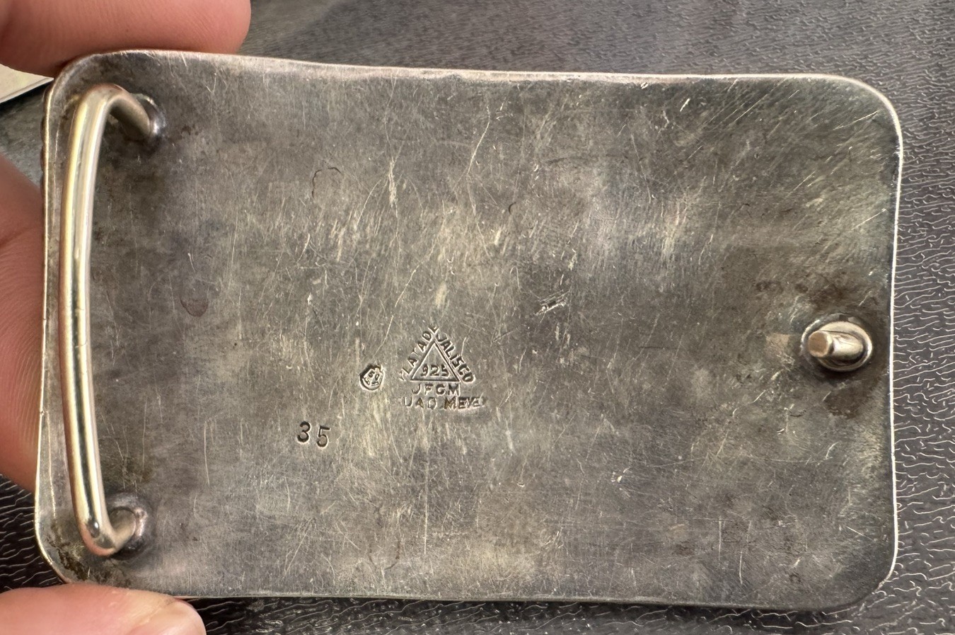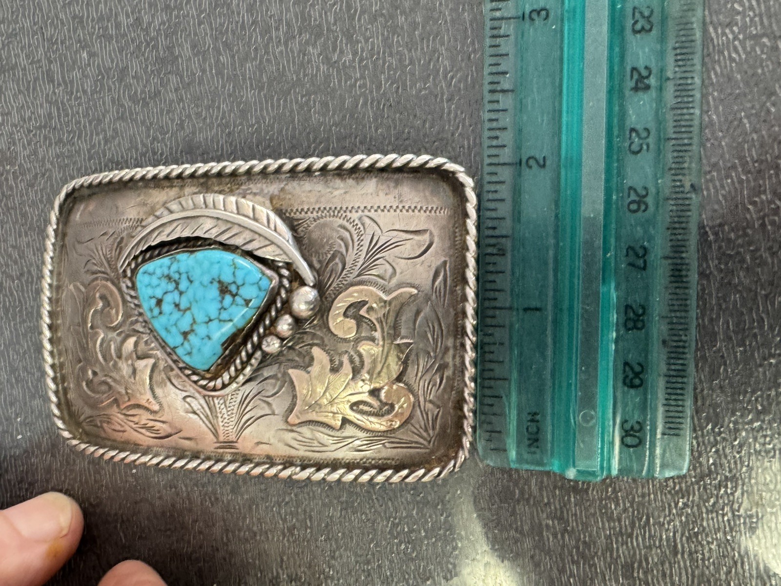 как выглядит Vintage Spiderweb Turquoise Belt Buckle Jalisco VHLC Mexico 925 Sterling Silver фото