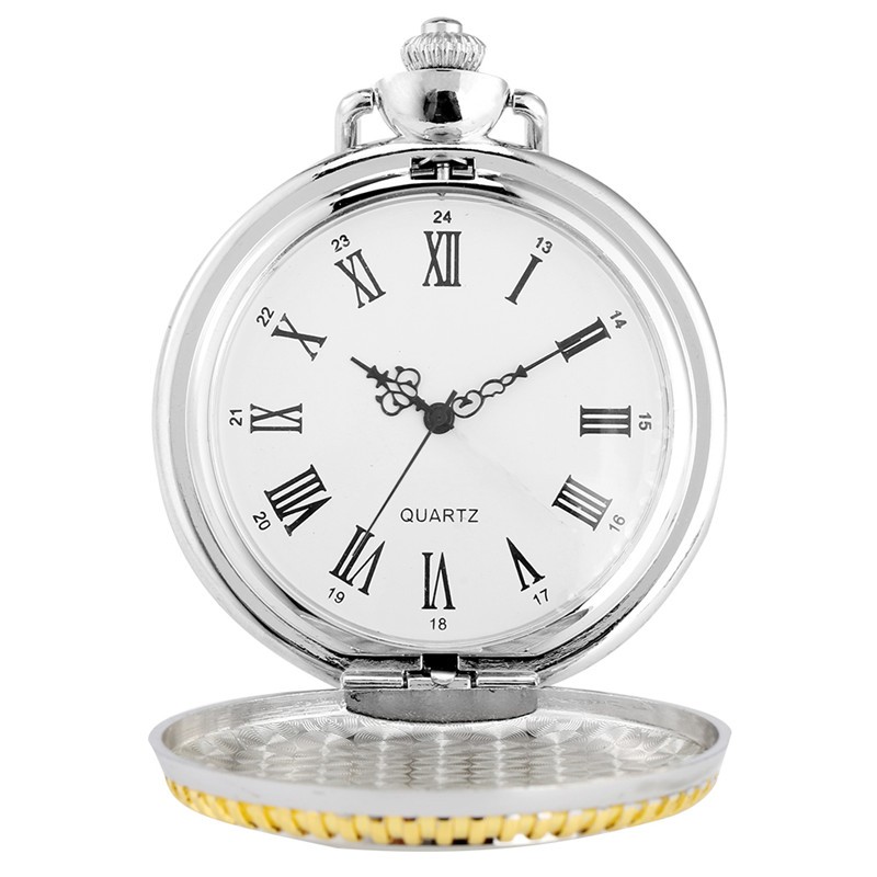 Steam Train Design Pocket Watch Two-Tone Quartz Movement Birthday Gift Idea
