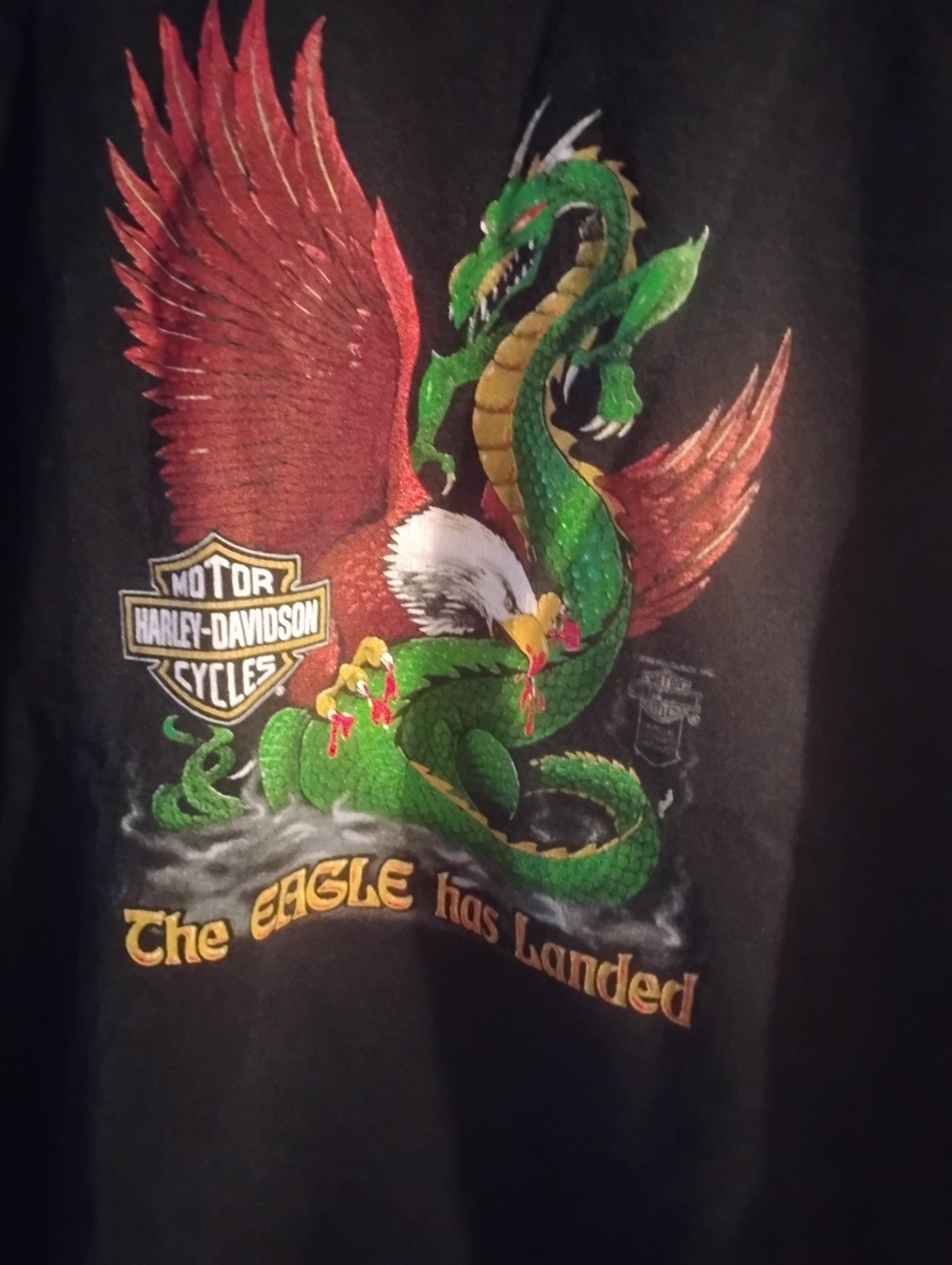 как выглядит Vtg Harley Davidson Black The Eagle Has Landed Dragon sweatshirt Size XXL фото