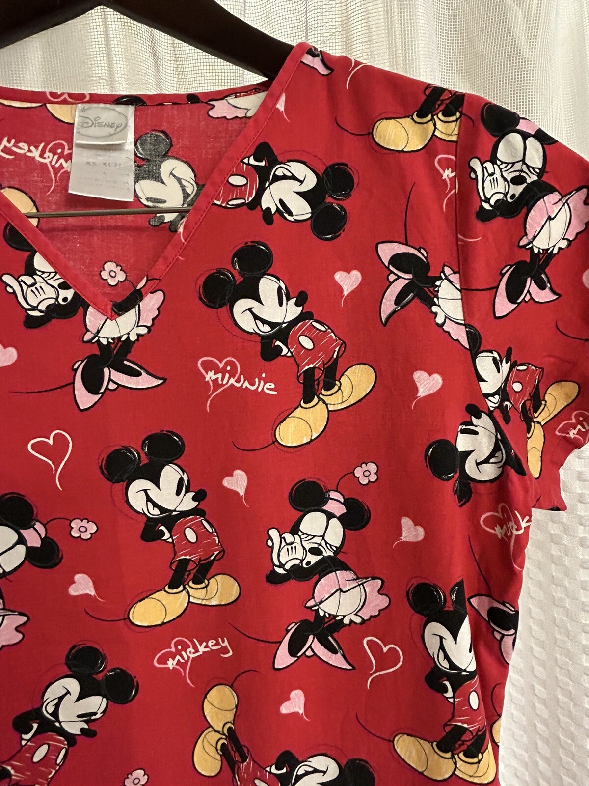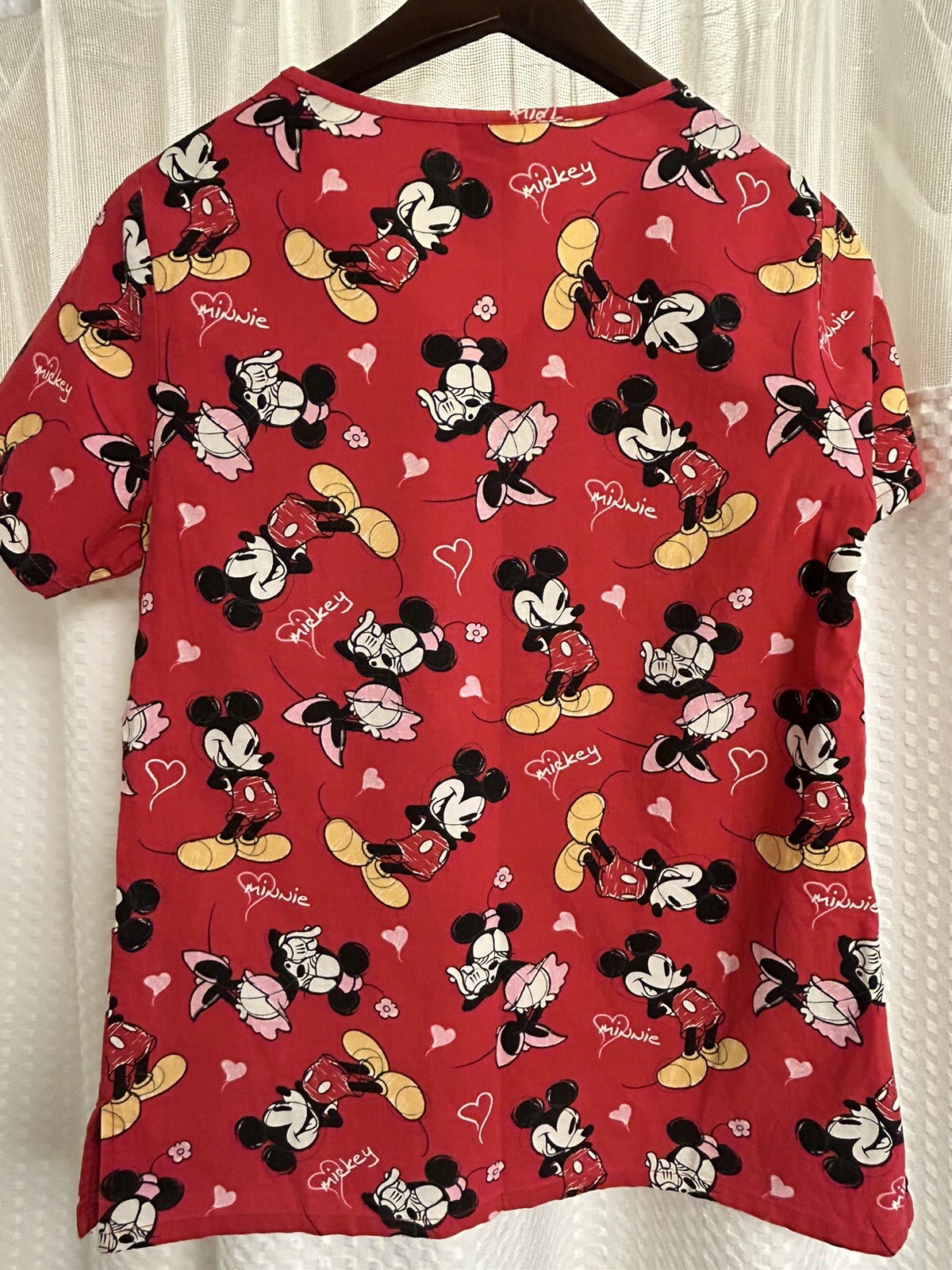 Women s XS Disney Mickey Minnie Mouse Red Scrub Top Love Valentine V Neck