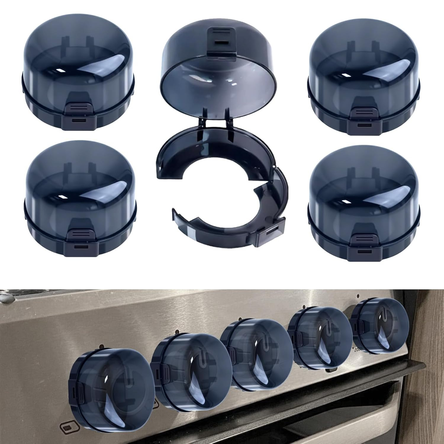 как выглядит Stove Knob Safety Covers Child Oven Safety Knobs Guard Covers 5 Pcs 8.98X5.43Cm фото