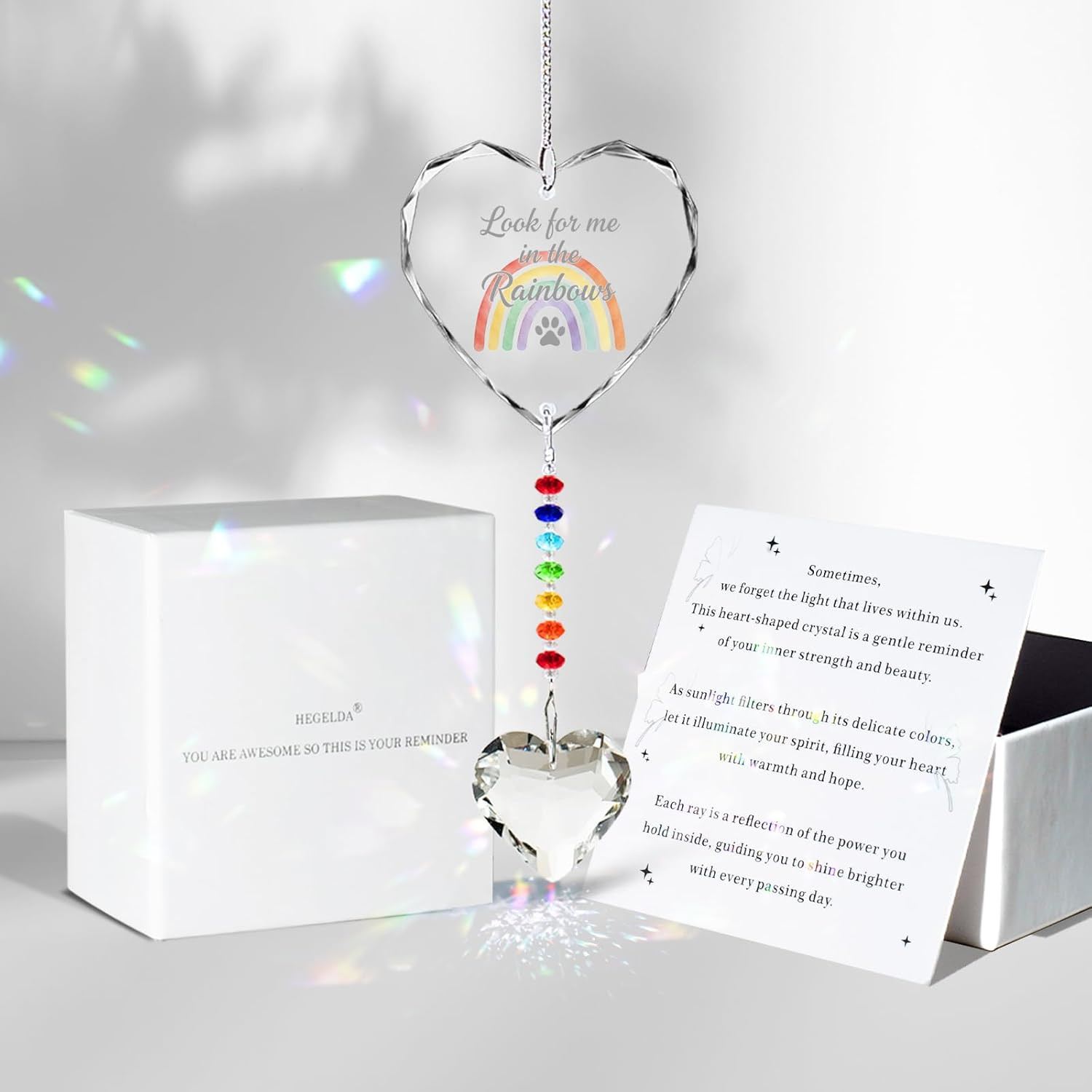 Pet Memorial Gifts for Dogs Cats Look for Me in the Rainbows Crystal Suncatcher