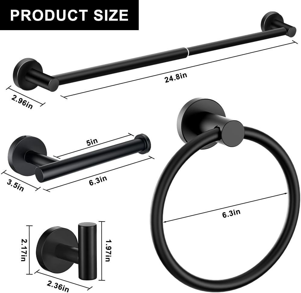 5 Pcs Black Bathroom Hardware Set Stainless Steel Towel Bar Towel Racks Hooks