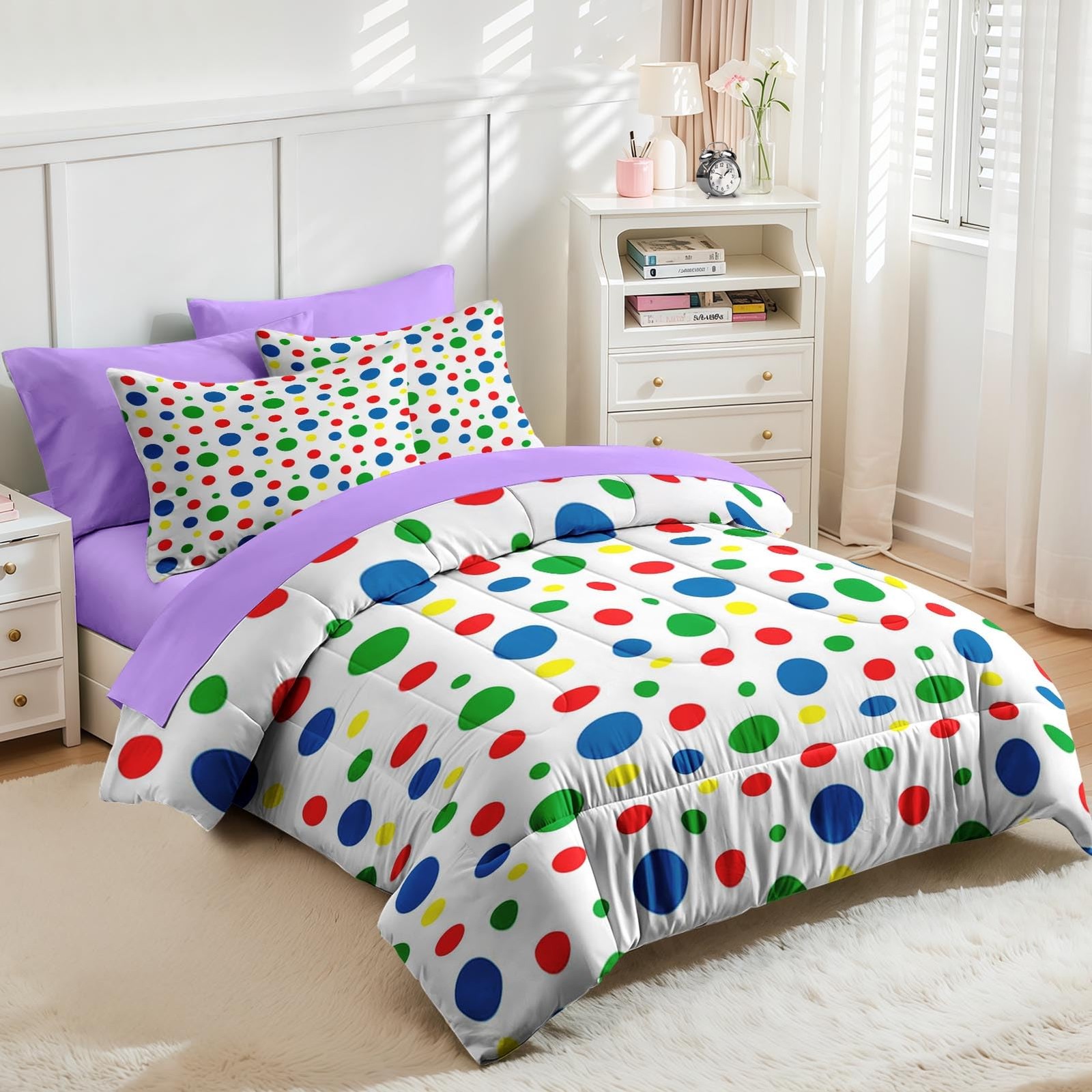 Comforter Set Twin Size, Rainbow Green Red 5 Pcs Bedding for and Adults, Blue...