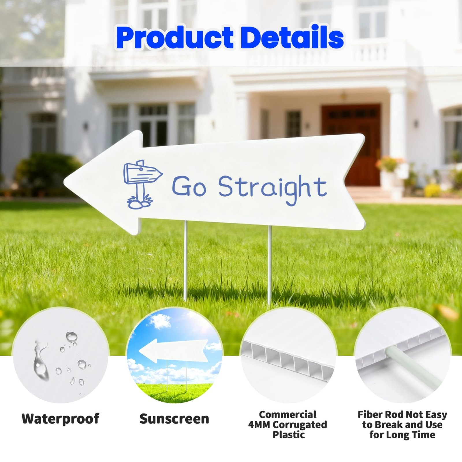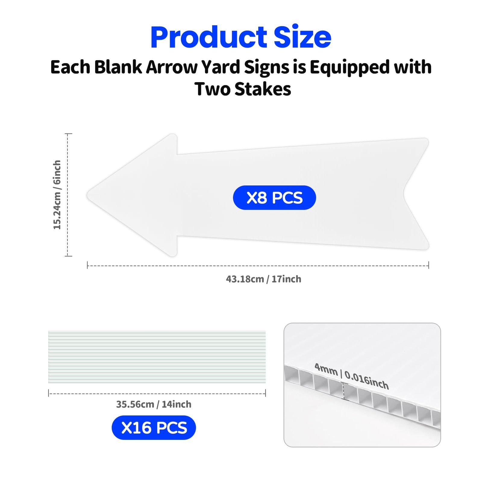 Blank Arrow Signs with Stakes, 8 Pack 17x6 Inch Double Sided Blank Yard Signs...