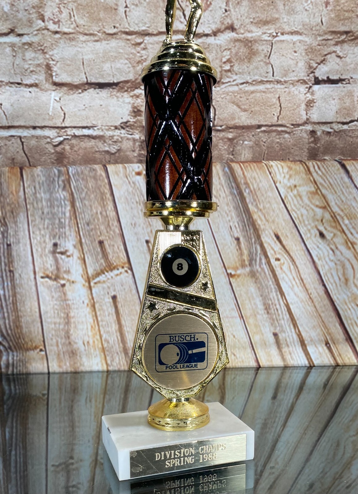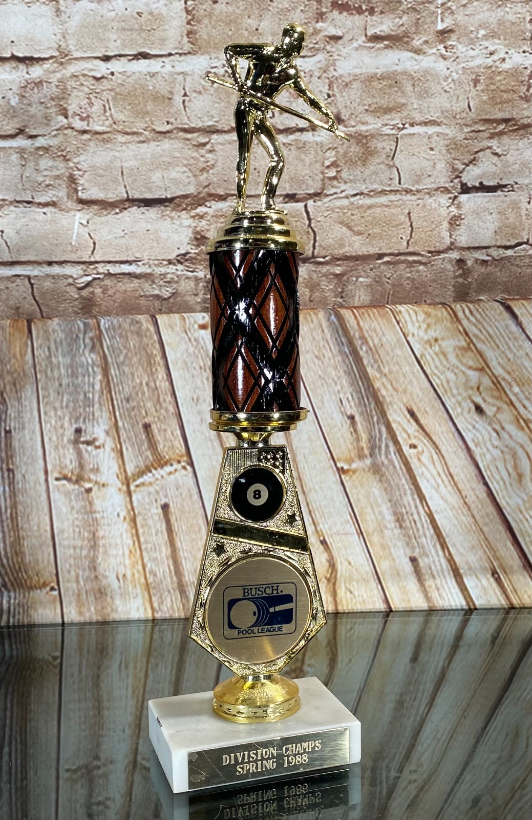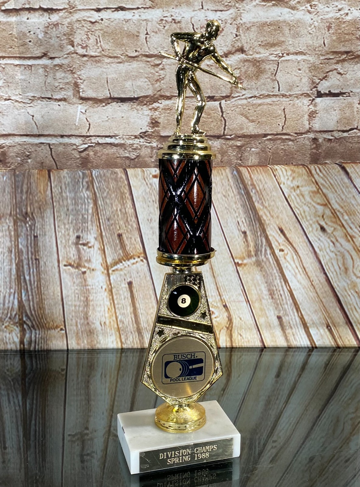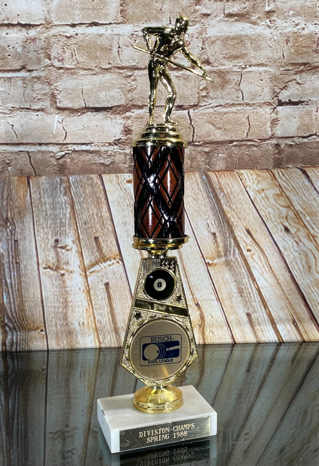 Vintage Pool Billiards Trophy BUSCH League 8-Ball 1988 Marble/Plastic 13.5