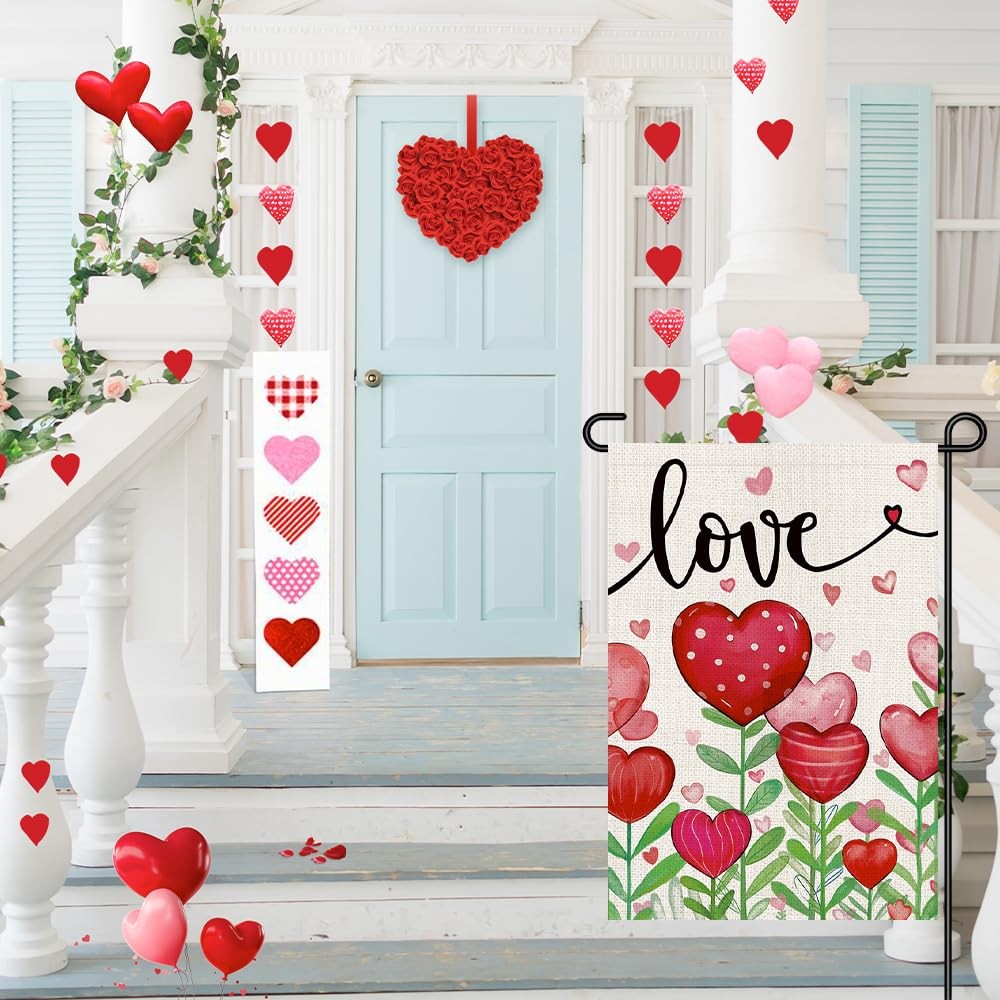 Valentines Day Garden Flags for Outside12x18 Double Sided Burlap, Anniversary.