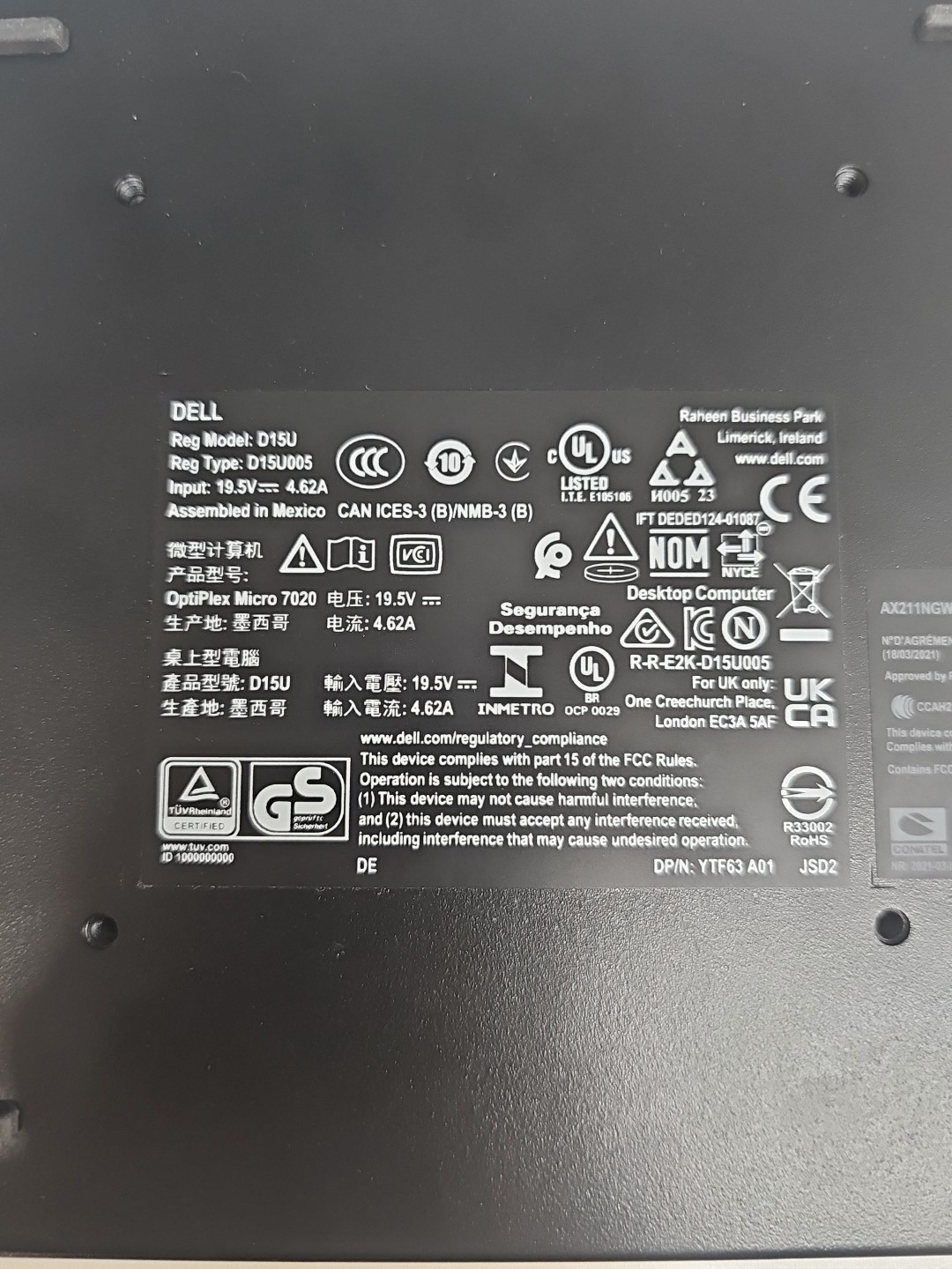 MPN: D15U, Optiplex 7020