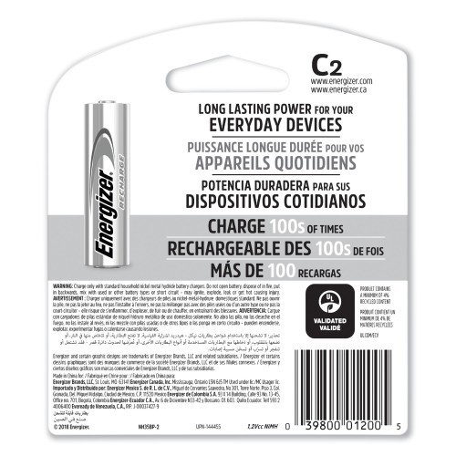 Energizer NiMH Rechargeable C Batteries, 1.2 V, 2/Pack NH35BP2