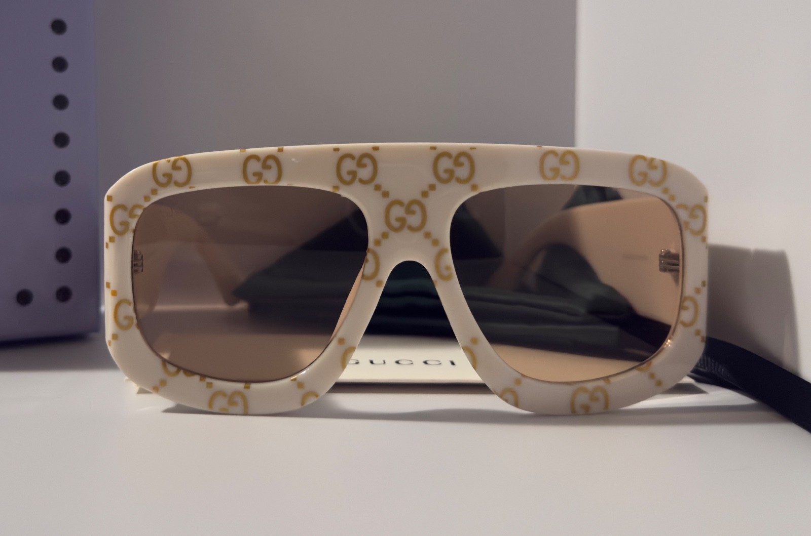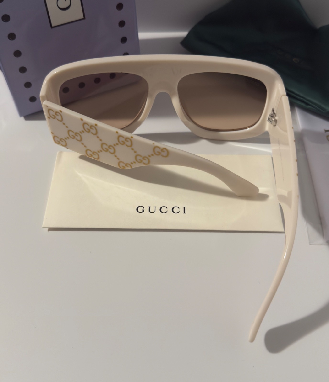 Gucci GG0983S Oversized Square Sunglasses Cream Gold GG Orange Lens Ships Today