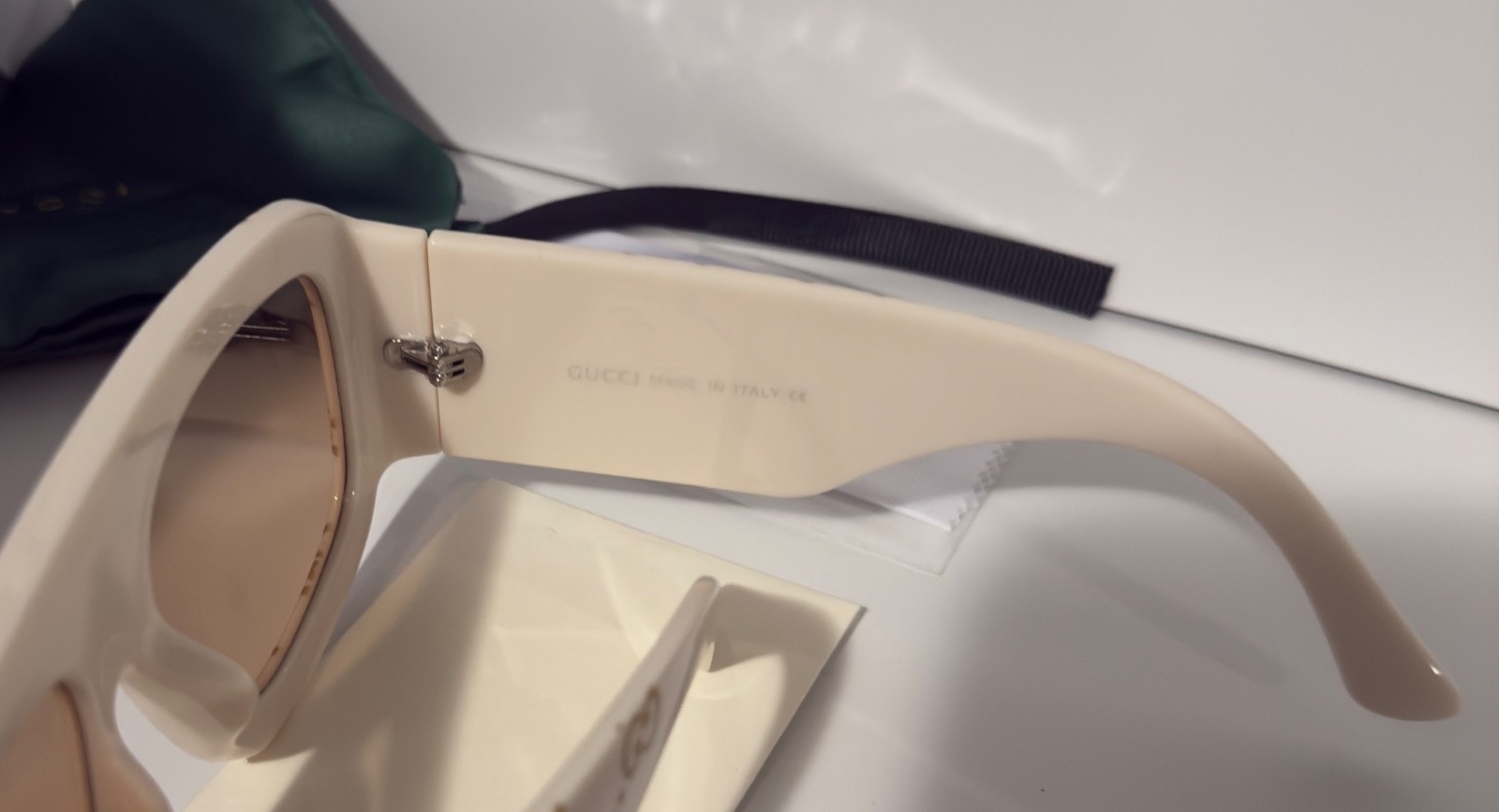 как выглядит Gucci GG0983S Oversized Square Sunglasses Cream Gold GG Orange Lens Ships Today фото