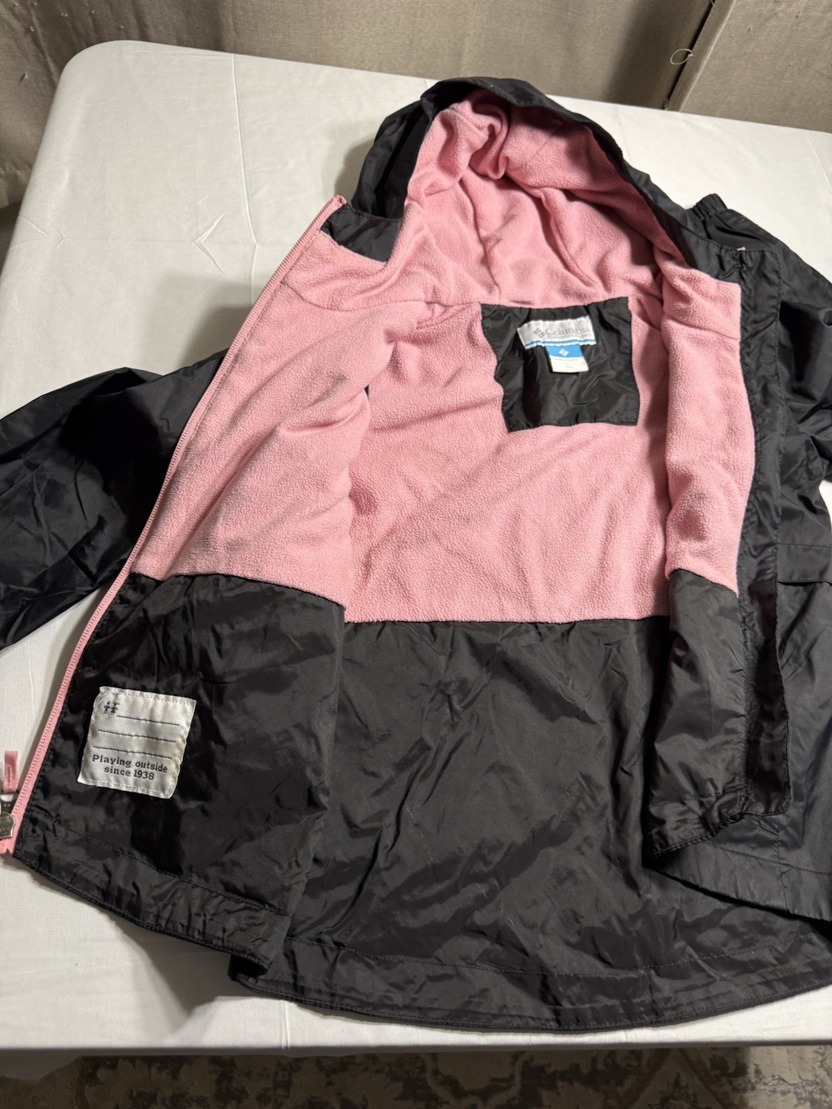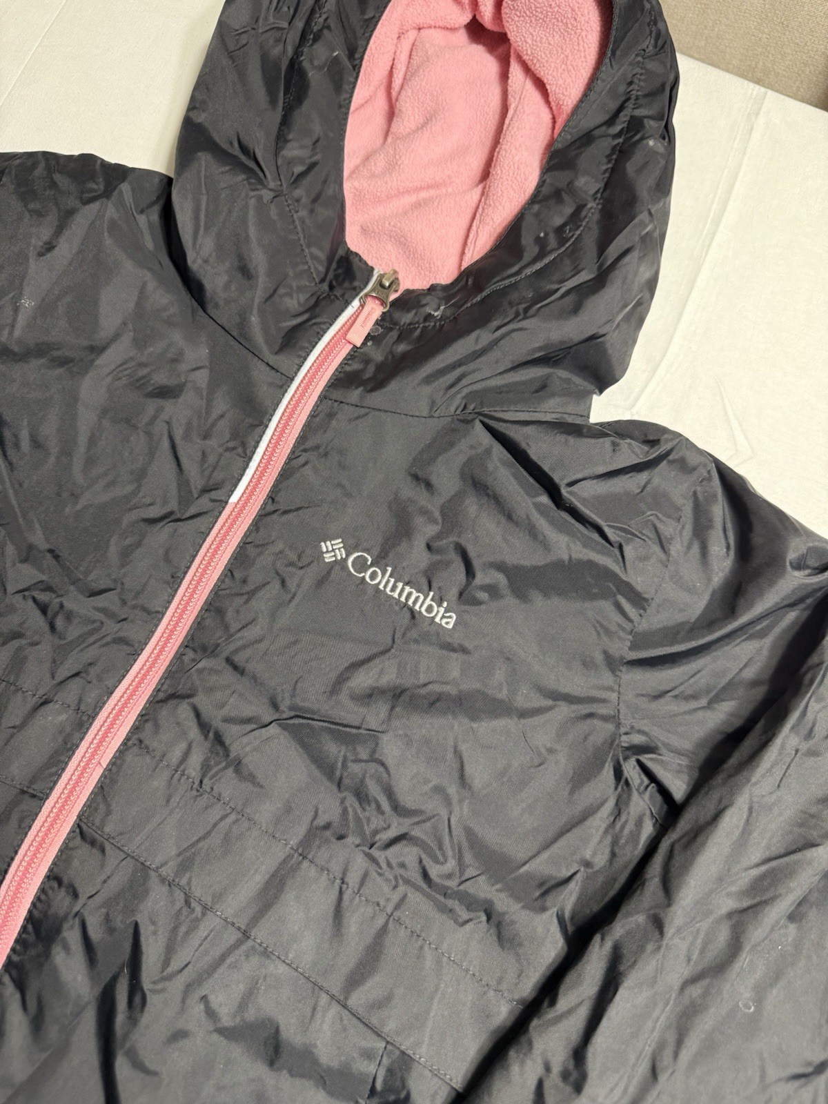 как выглядит Columbia Youth Small 7/8 Hooded Jacket Black Pink Fleece Lined Kids Full Zip фото