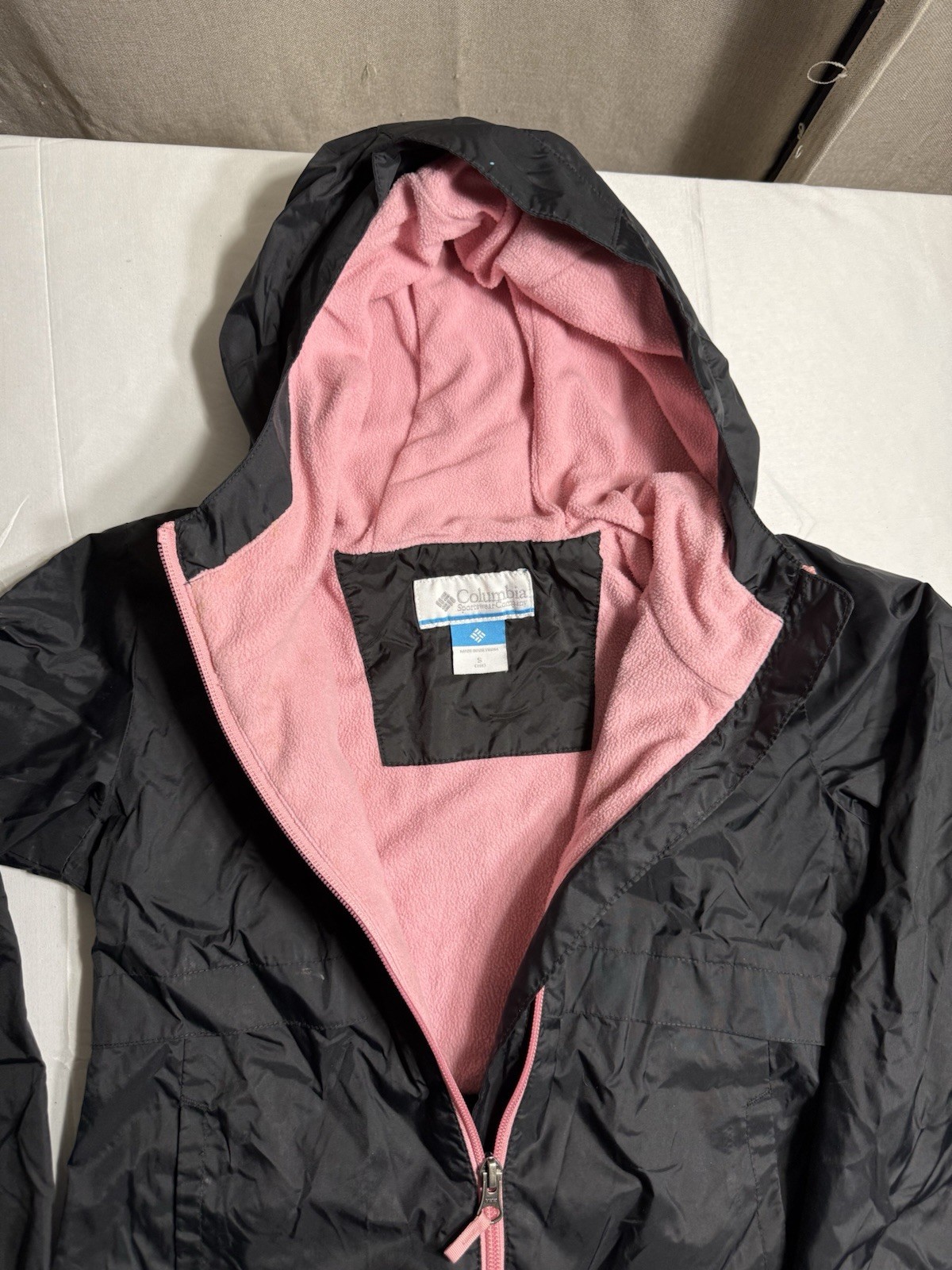 Columbia Youth Small 7/8 Hooded Jacket Black Pink Fleece Lined Kids Full Zip