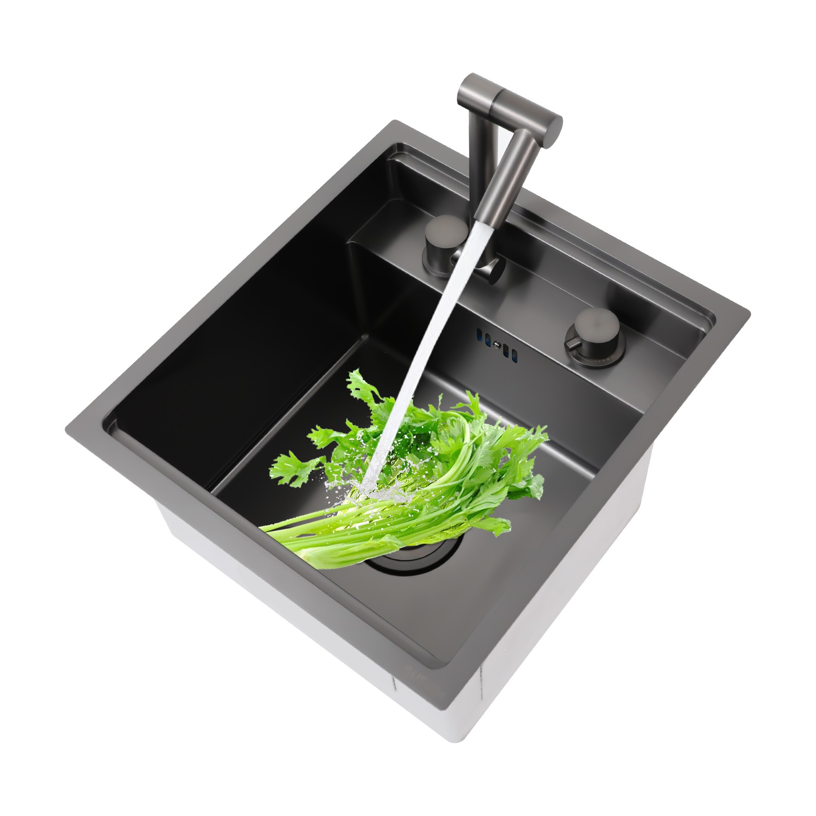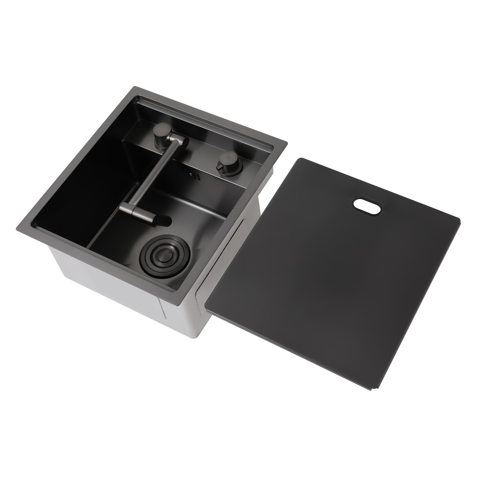 15-inch Hidden RV Kitchen Sink Bar Sink with Folding Faucet Cover Drain Pipe