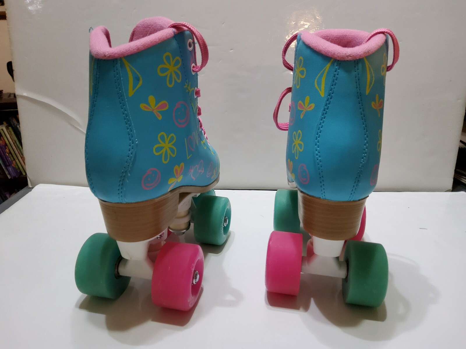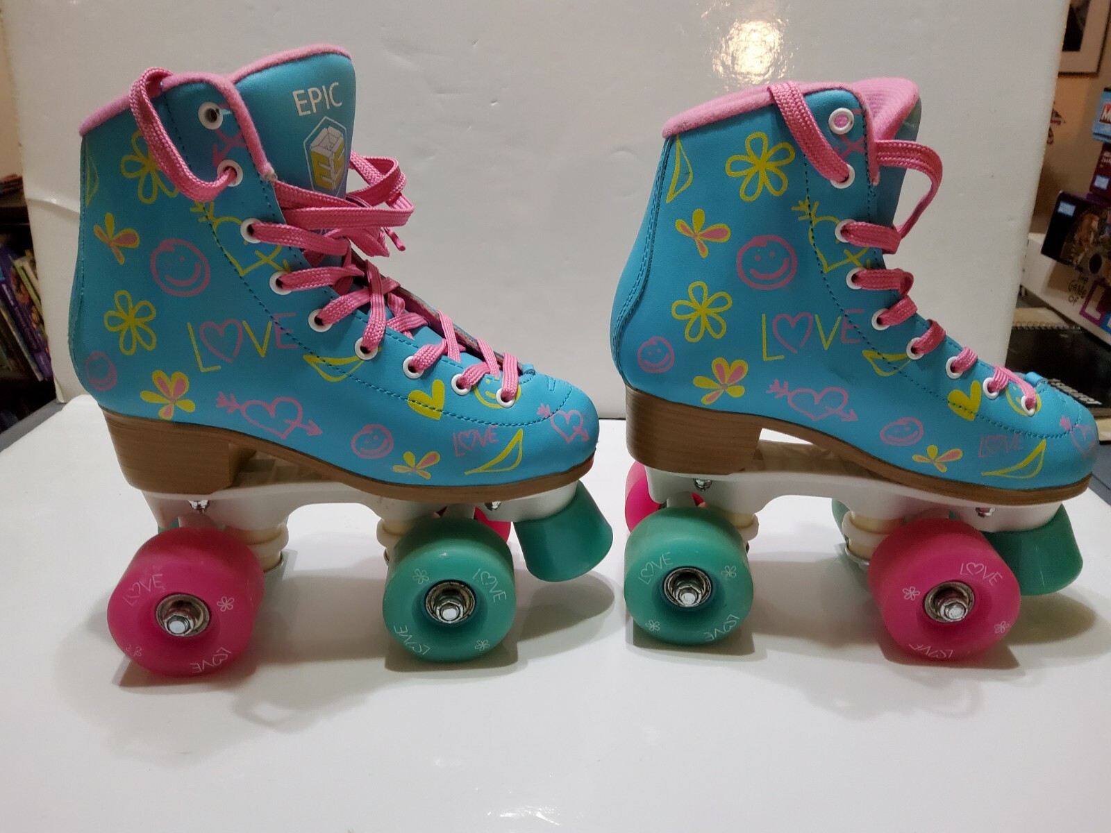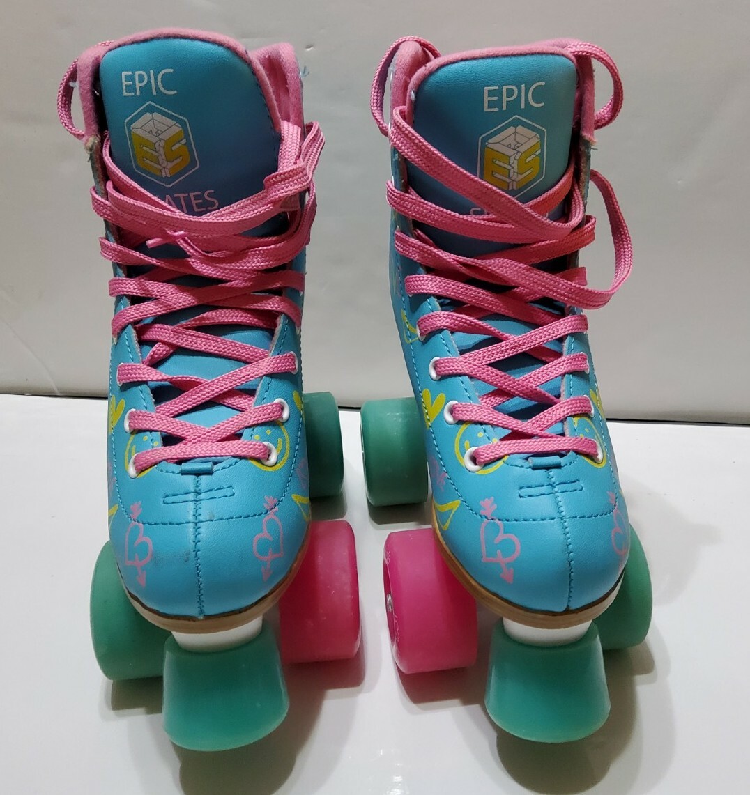 как выглядит Epic Blue Pink Love Graffiti High-Top Quad Roller Skates Size J13 Youth фото