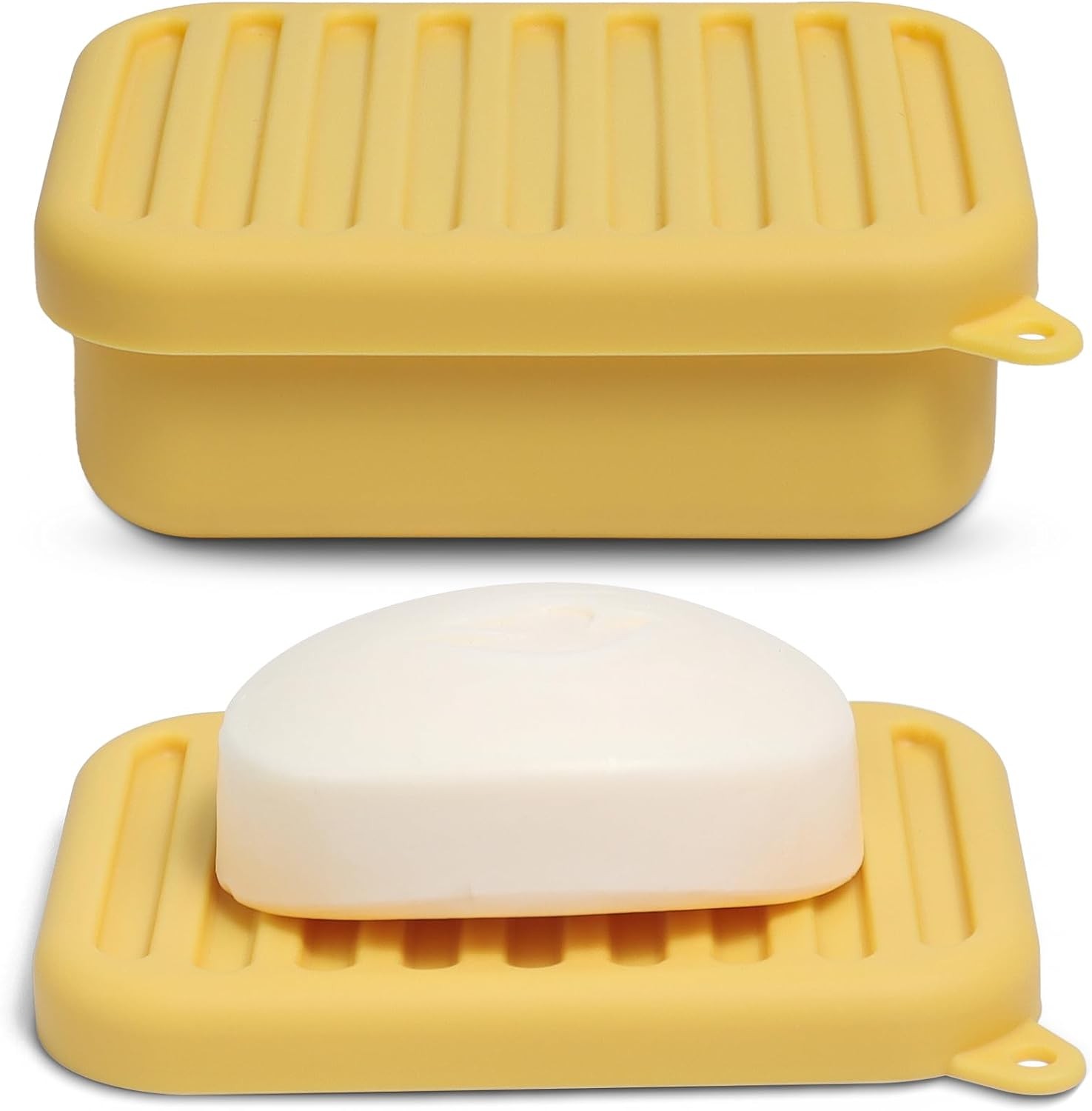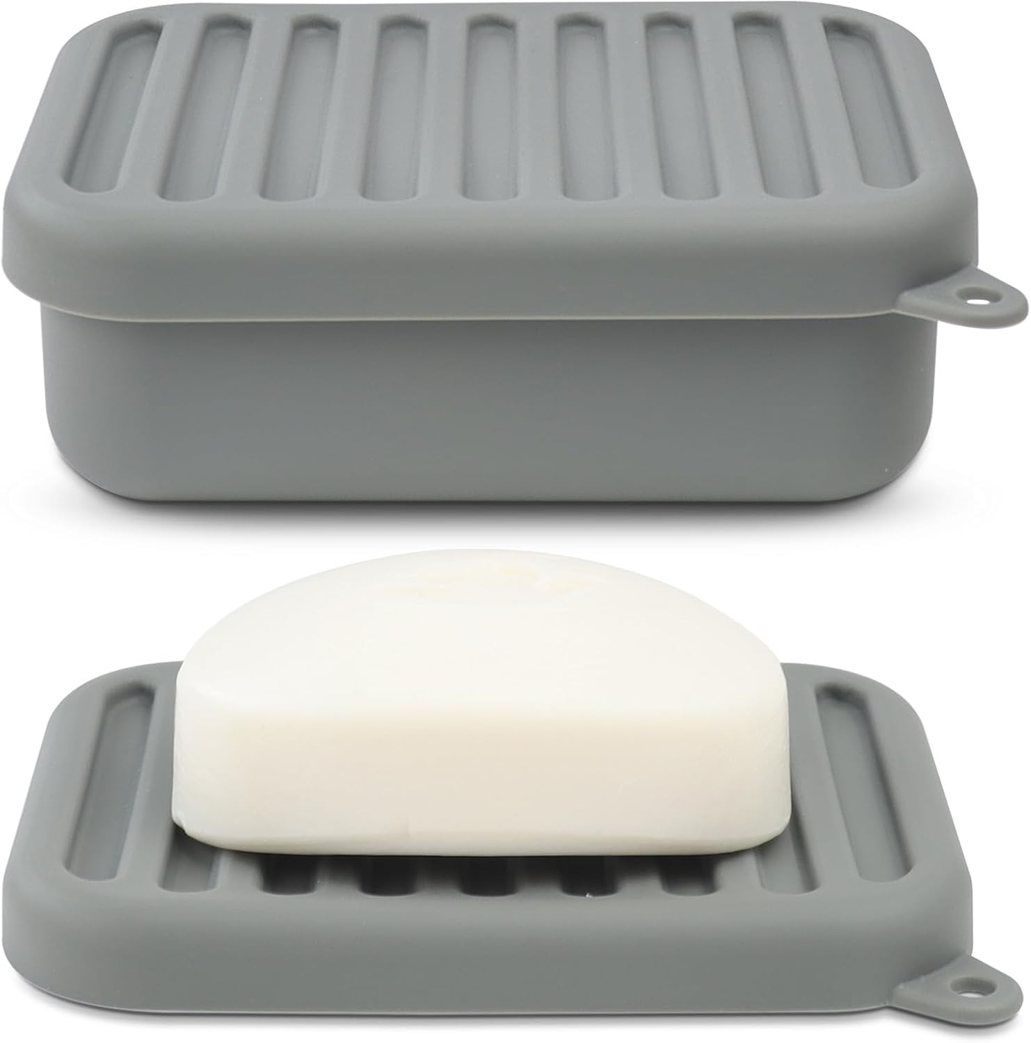 Superior Leak-Proof Silicone Travel Soap Case W/ Drainage Lid/Layer Compact Bar