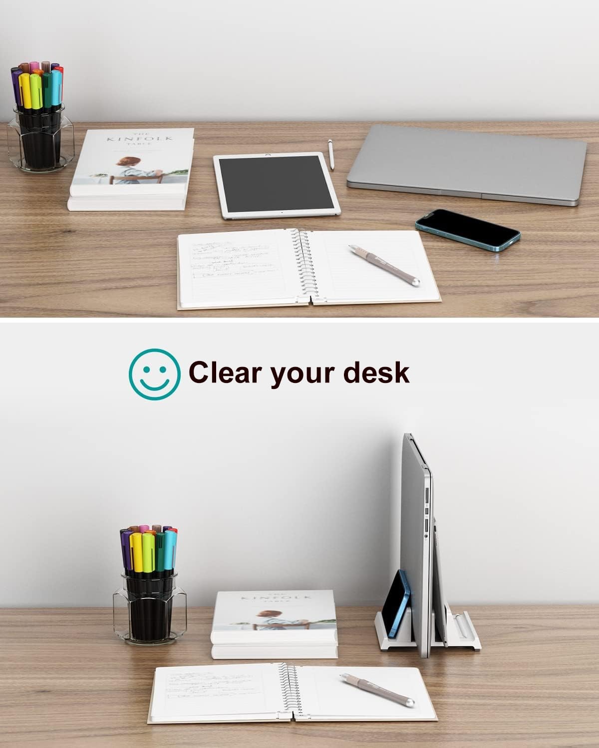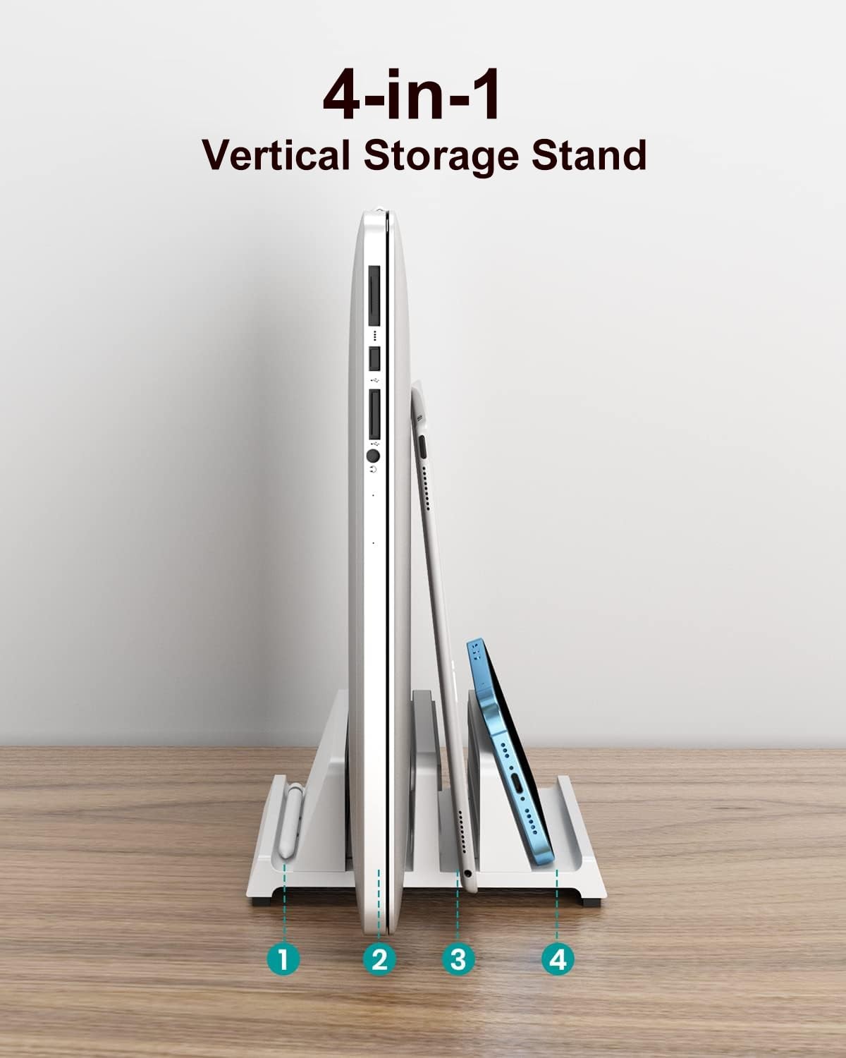 как выглядит Vertical Laptop Stand for Desk, Dual Slots Plastic Laptop Holder with Space S... фото
