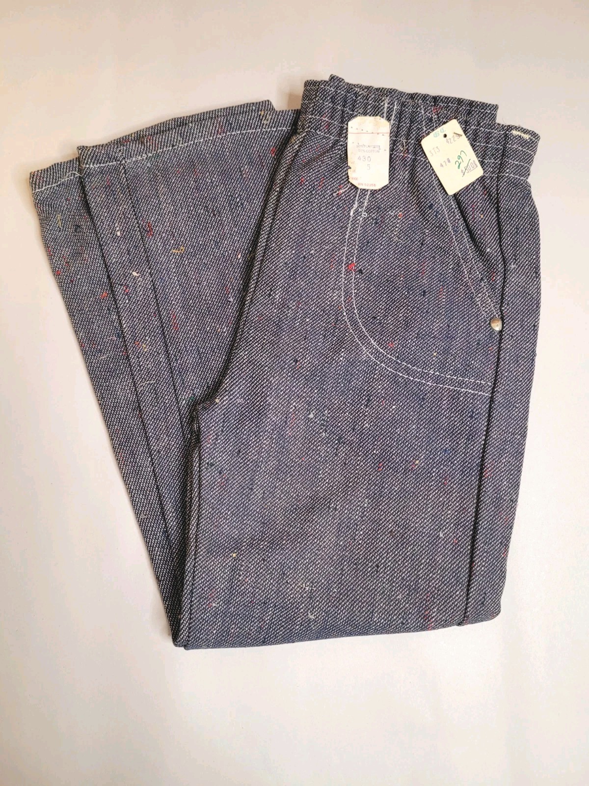 как выглядит Belk Vintage 70s Kids Pull-On Jeans Size 5 Denim Rainbow Fleck Elastic Waist New фото