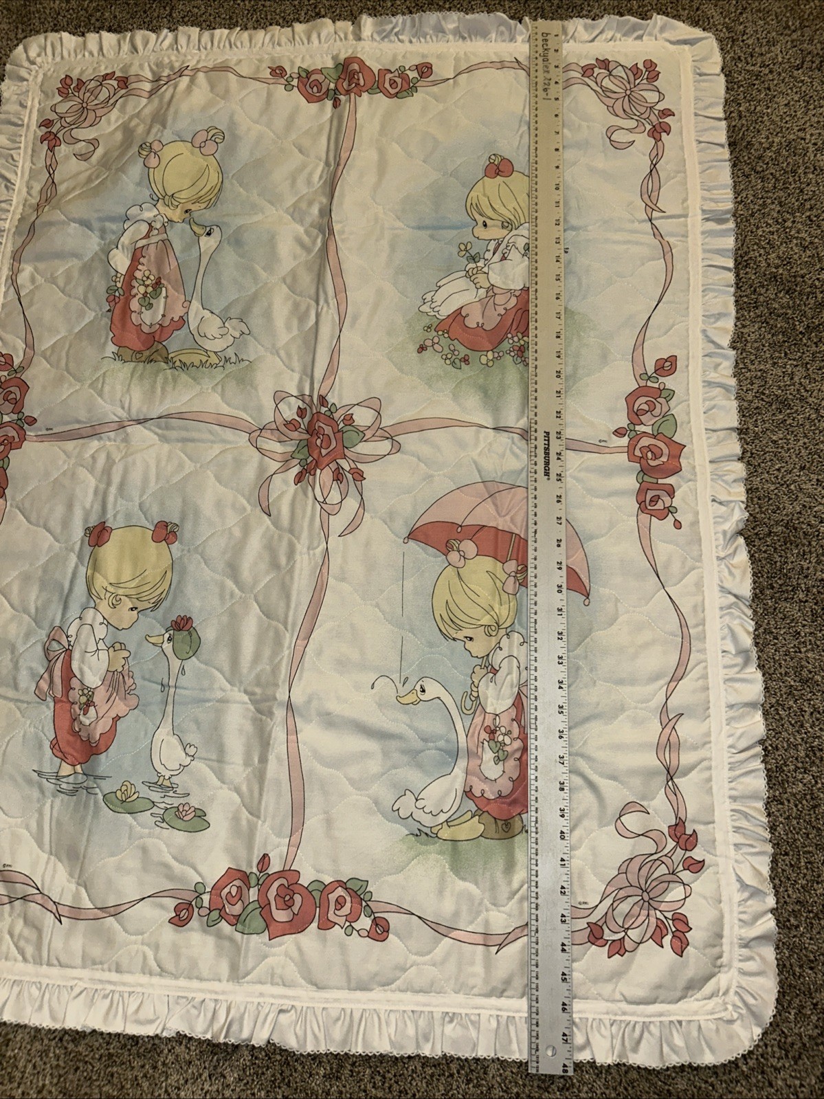 как выглядит VTG Precious Moments Girl Goose Ruffle Trim Baby Blanket Quilt фото