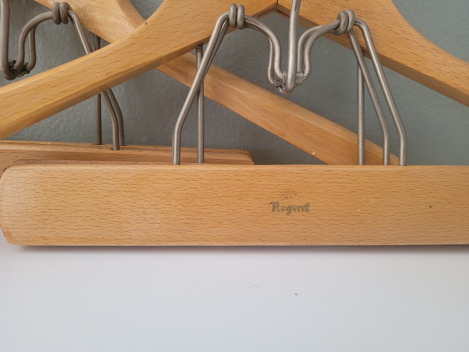 как выглядит Pair of Vintage Wood Suit Pant Hanger with Metal Clips 18 Inch фото
