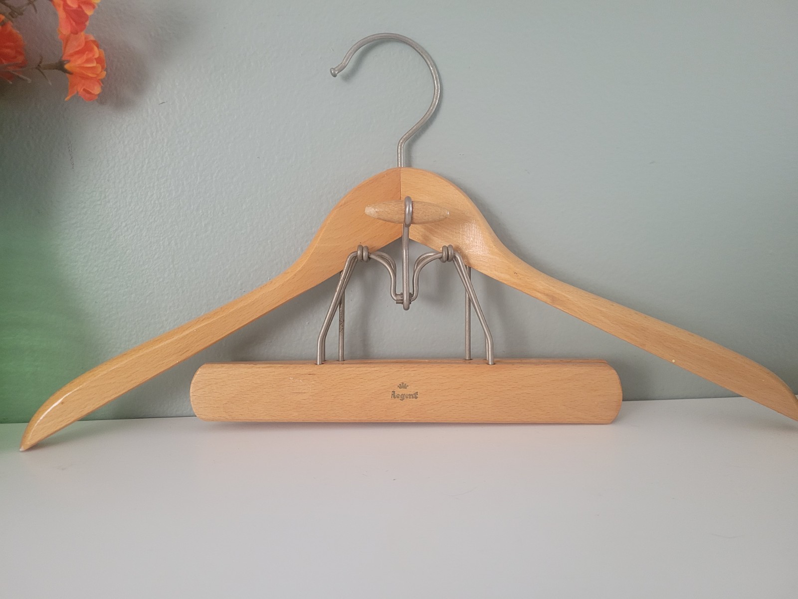 Pair of Vintage Wood Suit Pant Hanger with Metal Clips 18 Inch