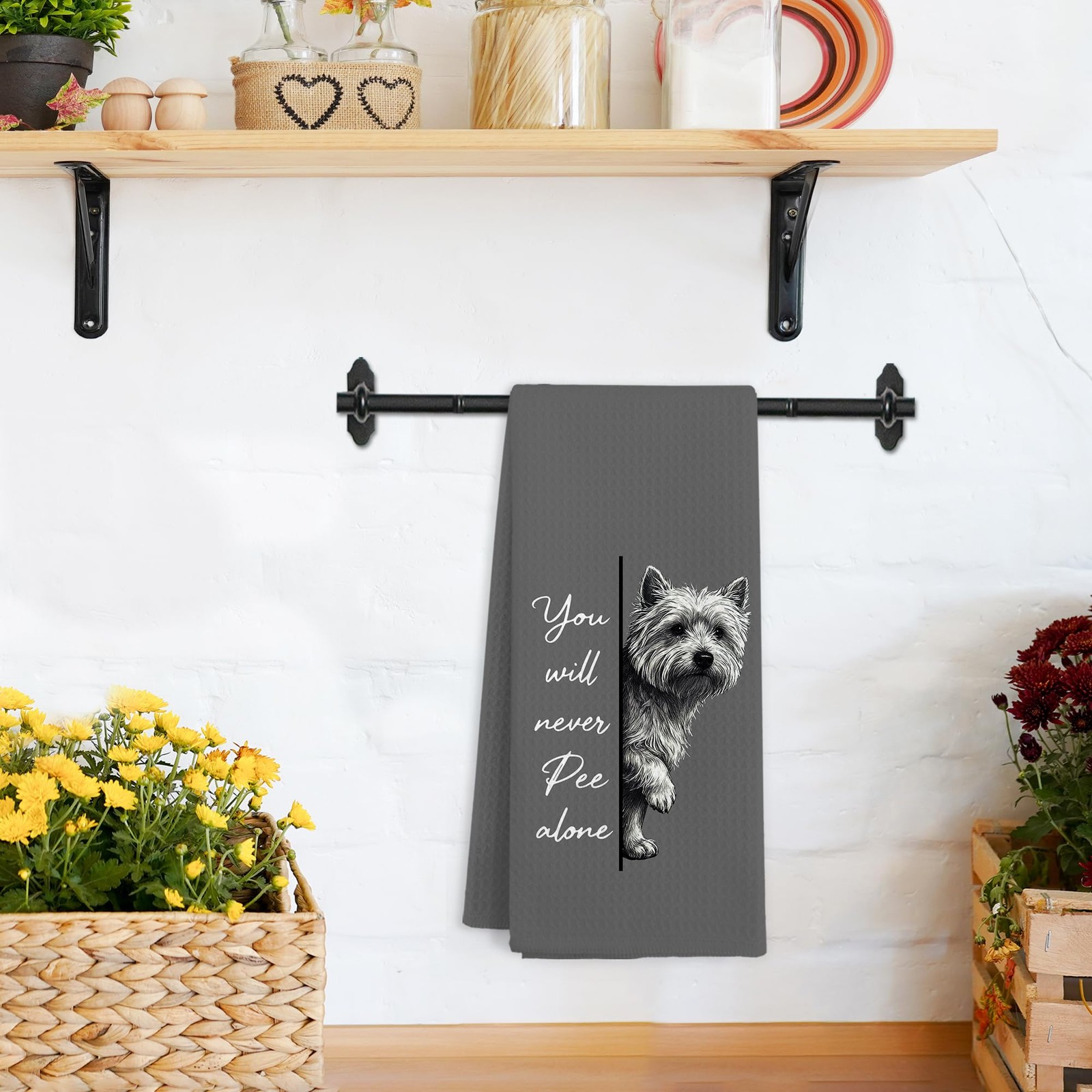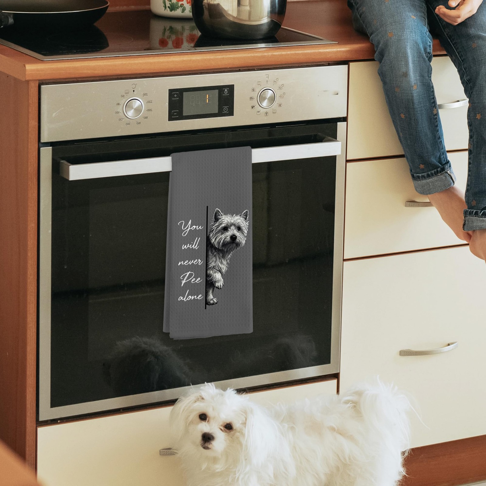 Funny Westie Dog Hand Towels Bathroom Never Pee Alone Lover Dish Tea Kitchen