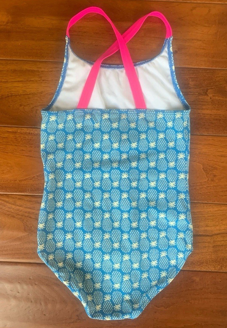 как выглядит Boden Cross Back Swimsuit Girls Size 8-9Y Blue Pineapple Print One Piece 135cm фото