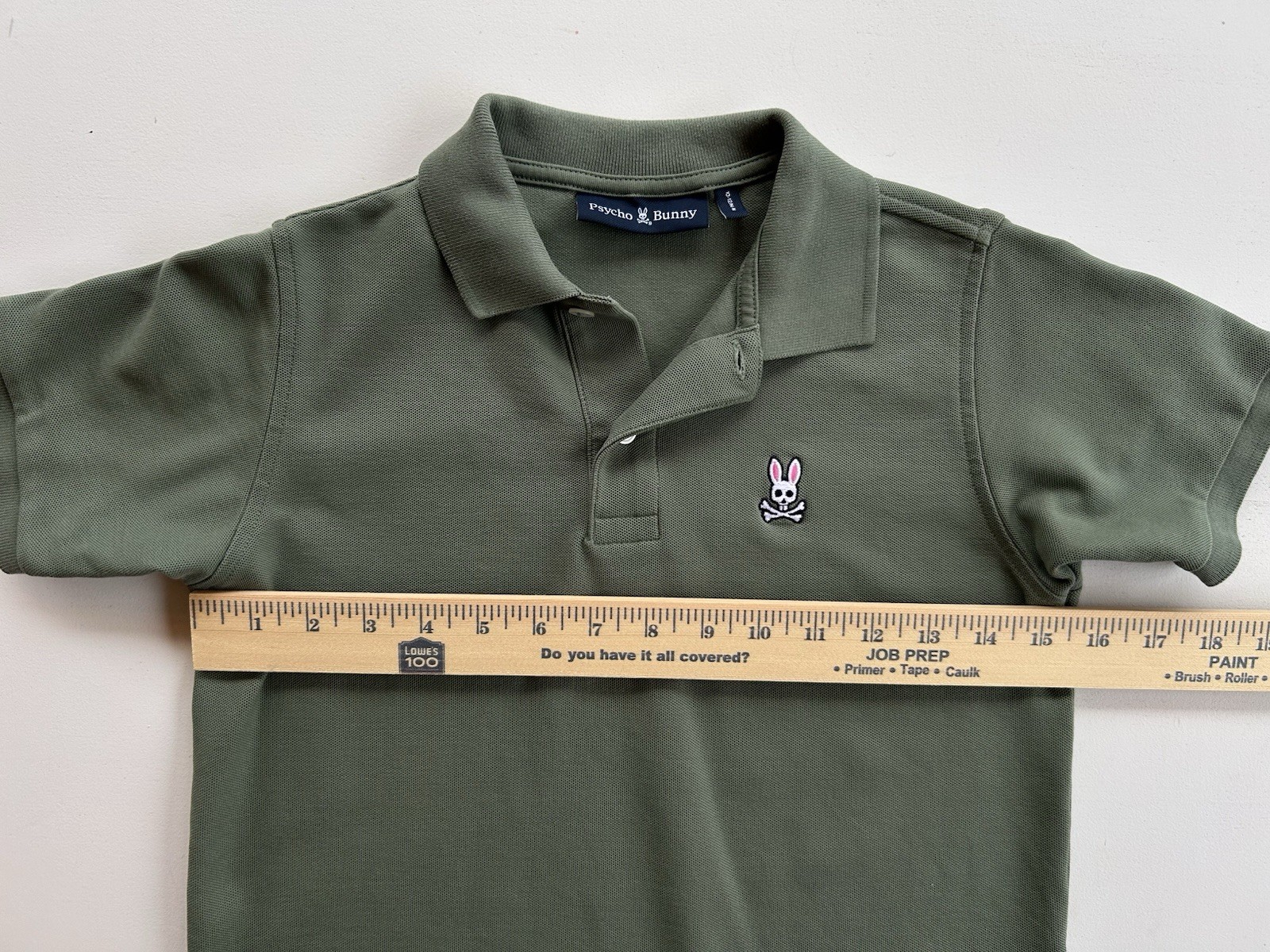 Psycho Bunny Polo Shirt Short Sleeve Green Kid Boys Size Medium 10/12 Pima