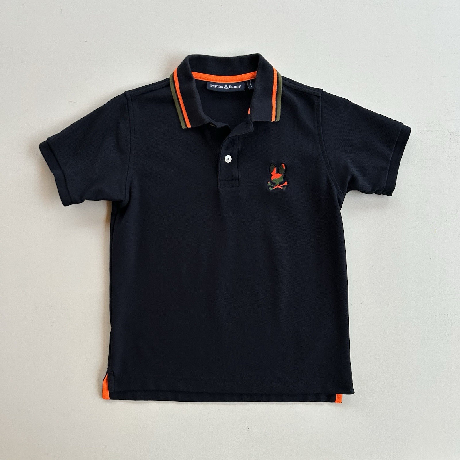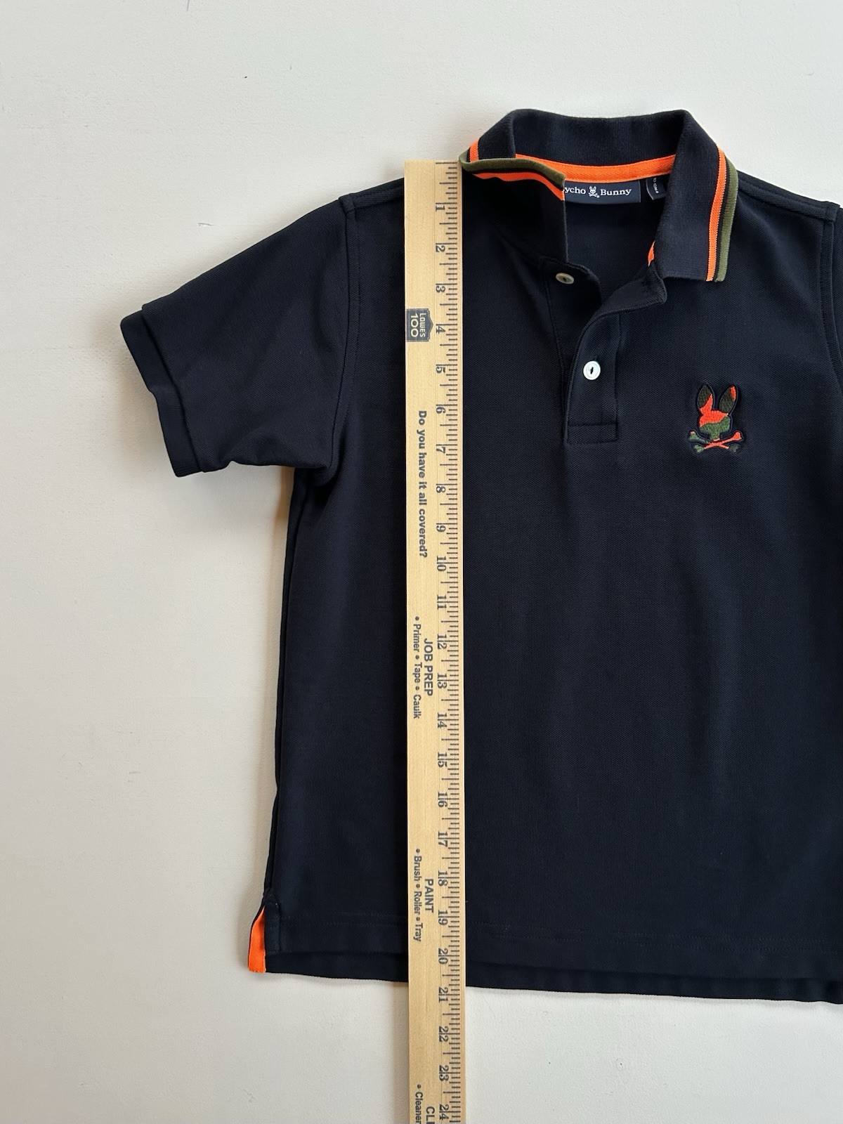 Psycho Bunny Polo Shirt Navy Blue Orange Green Kid Boys Size Medium 10/12 Pima