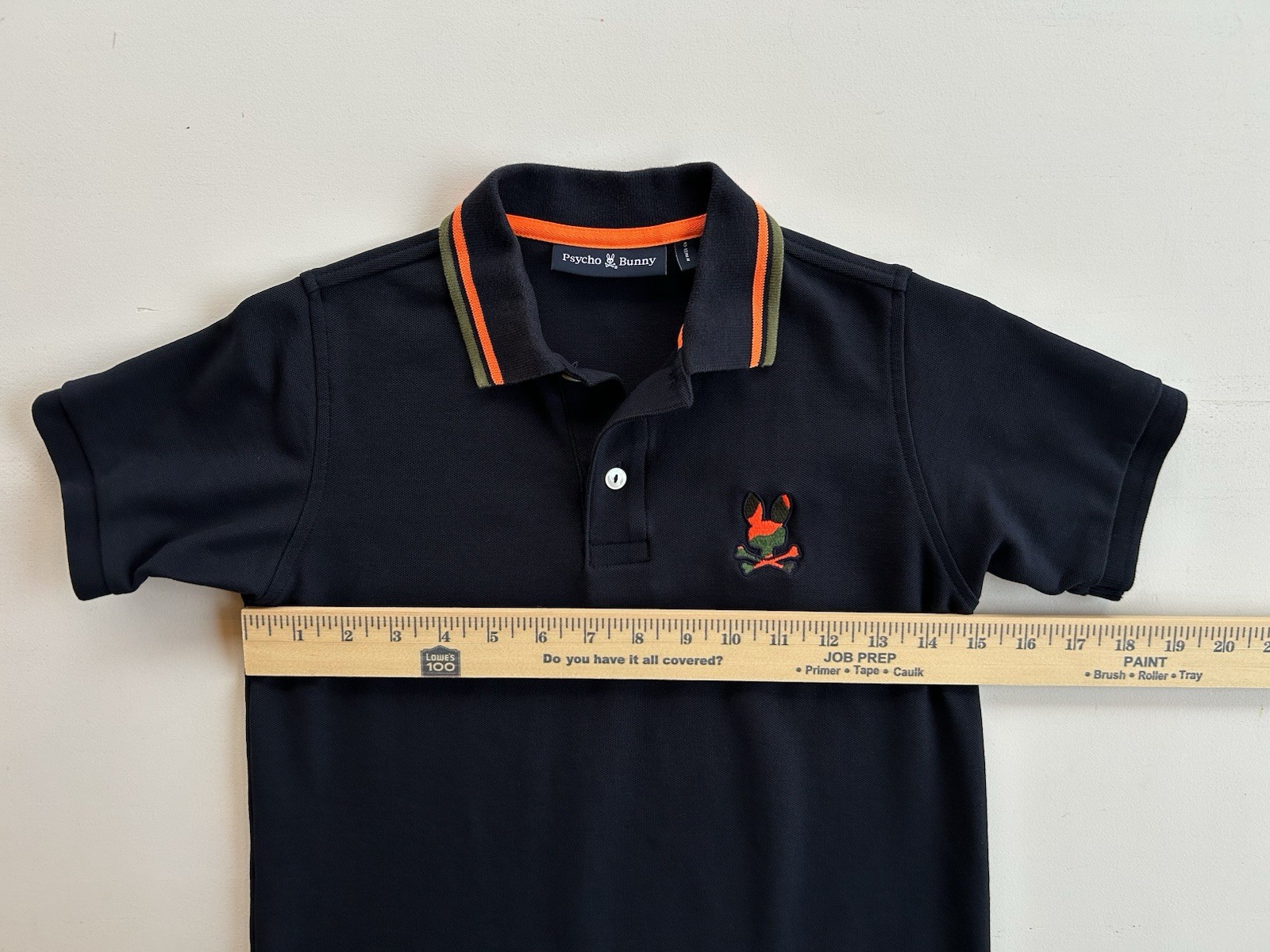 как выглядит Psycho Bunny Polo Shirt Navy Blue Orange Green Kid Boys Size Medium 10/12 Pima фото