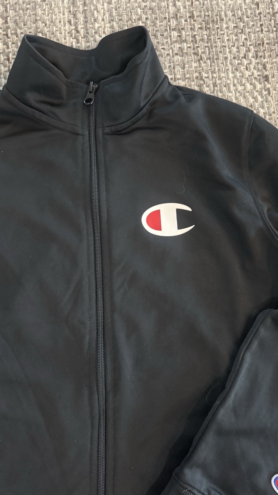 как выглядит Champion Youth Black Full Zip Track Jacket Size Your Size Logo Sleeve Athletic фото