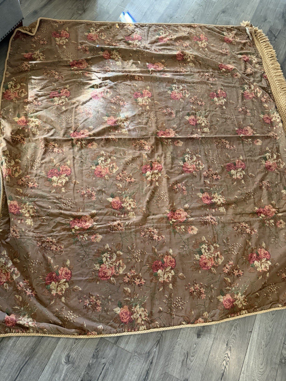 DUVET COVER-KING-100 COTTON Roses/Floral Brown With Fringe 96x87