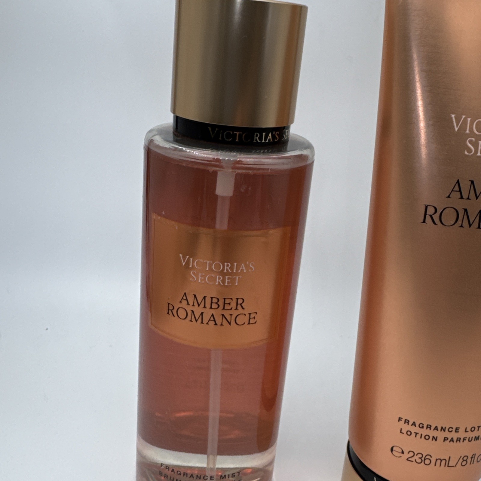 Set of 2 Victoria's Secret 8.4oz Amber Romance Fragrance Mist 8oz Body Lotion