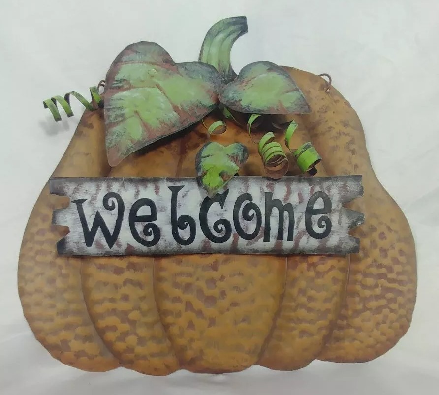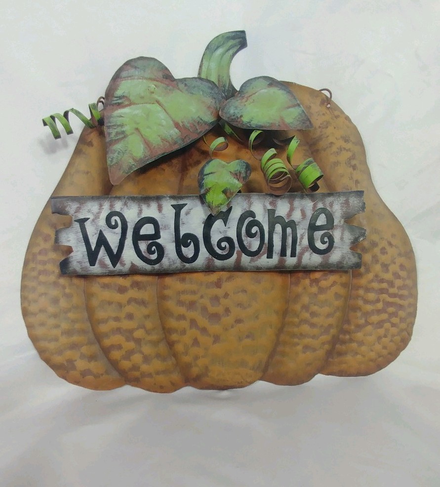 PUMPKIN Rustic WELCOME - HARVEST - FALL THANKSGIVING Metal DECORATION Sign.