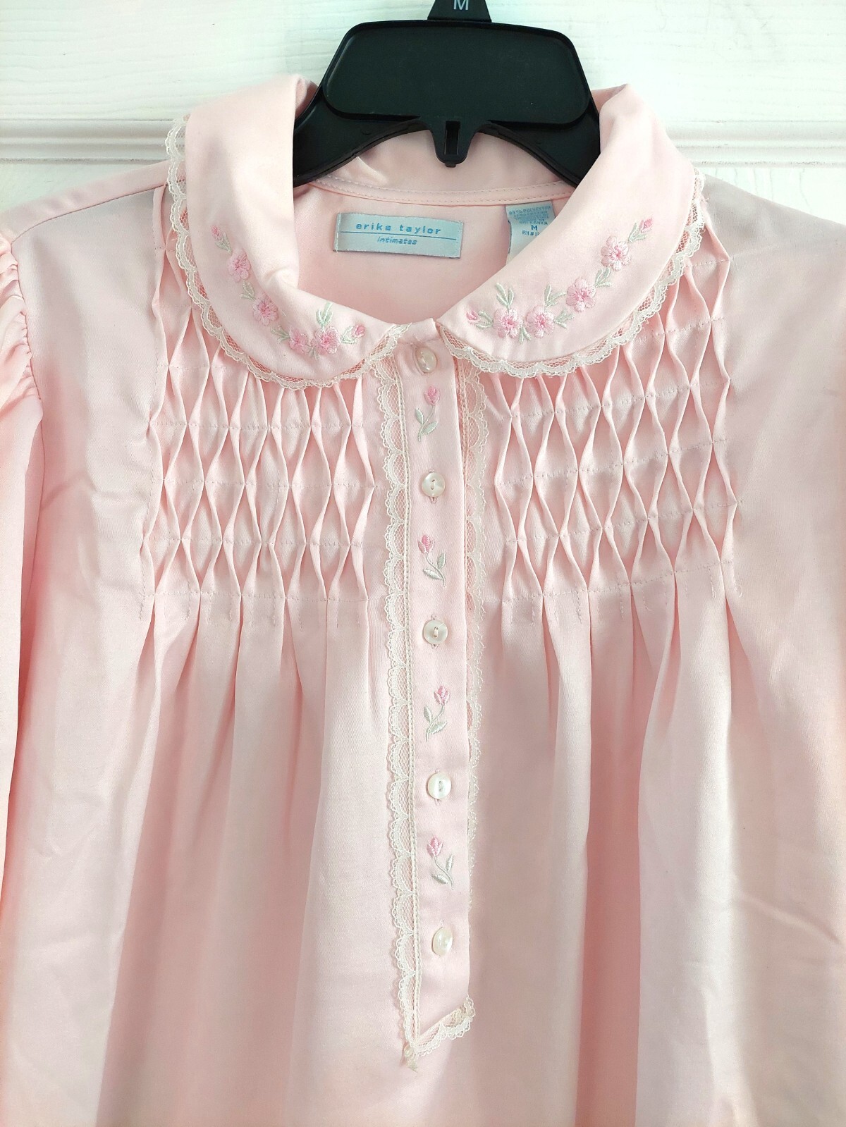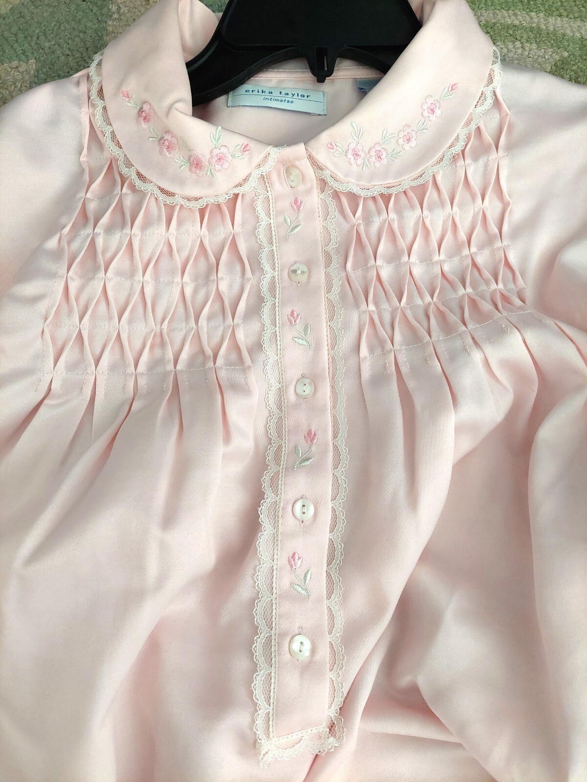 как выглядит Vintage Erika Taylor Intimates Pink Long Satin Night Gown Lace Sz M фото