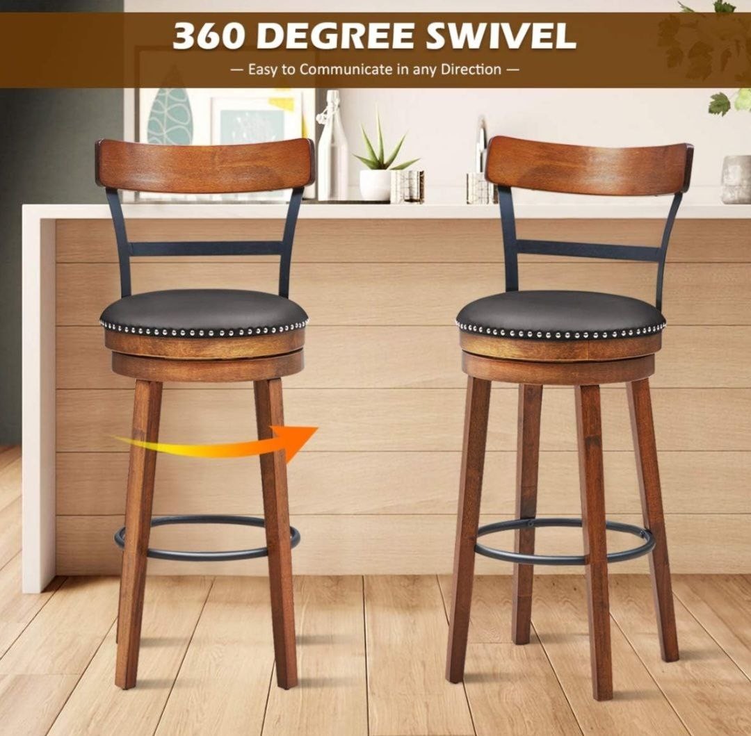 Set of 2 BarStool 30.5 Swivel Pub Height Dining Chair with Rubber Wood Legs