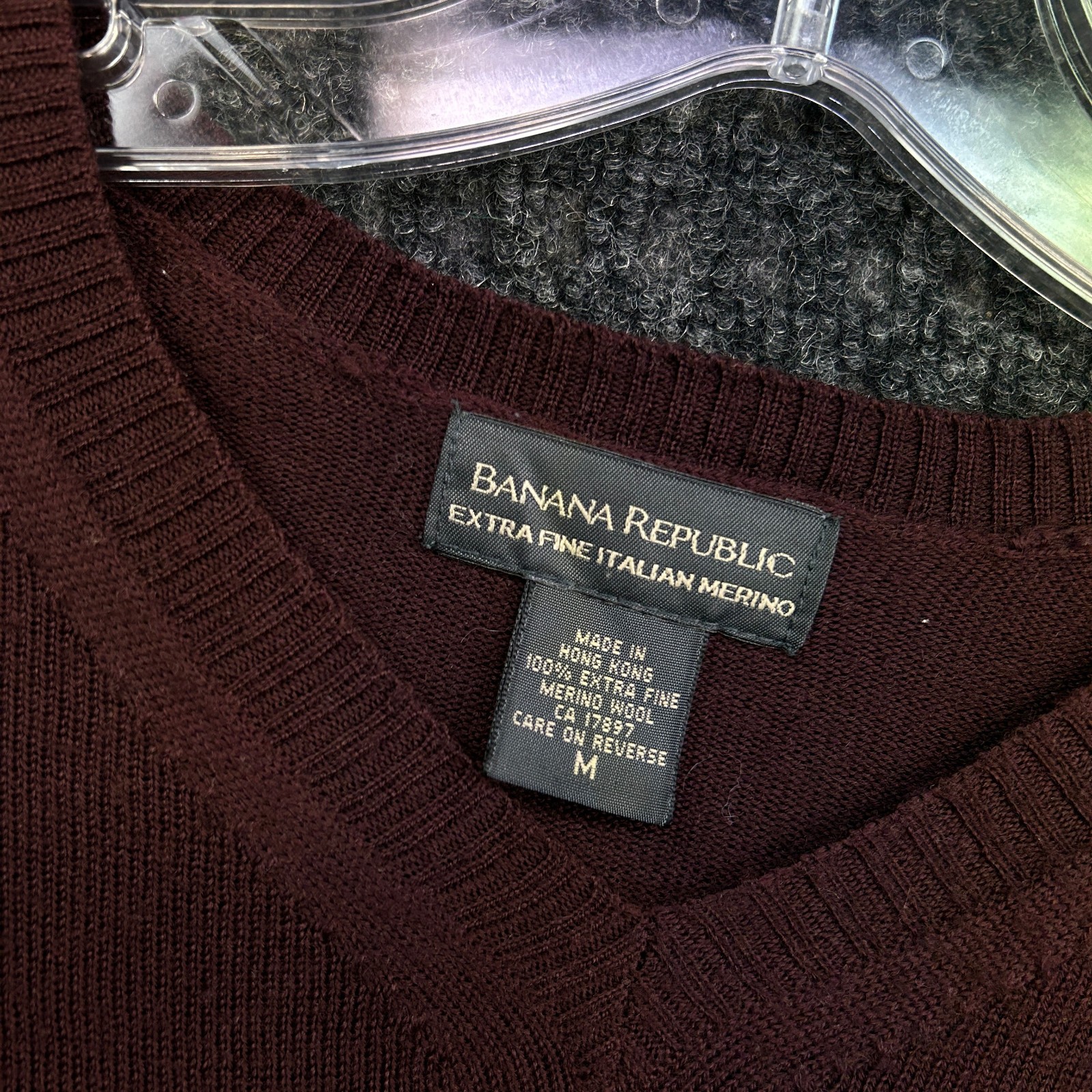 как выглядит Banana Republic 100 Extra Fine Merino Wool V Neck Sweater Mens M Maroon фото