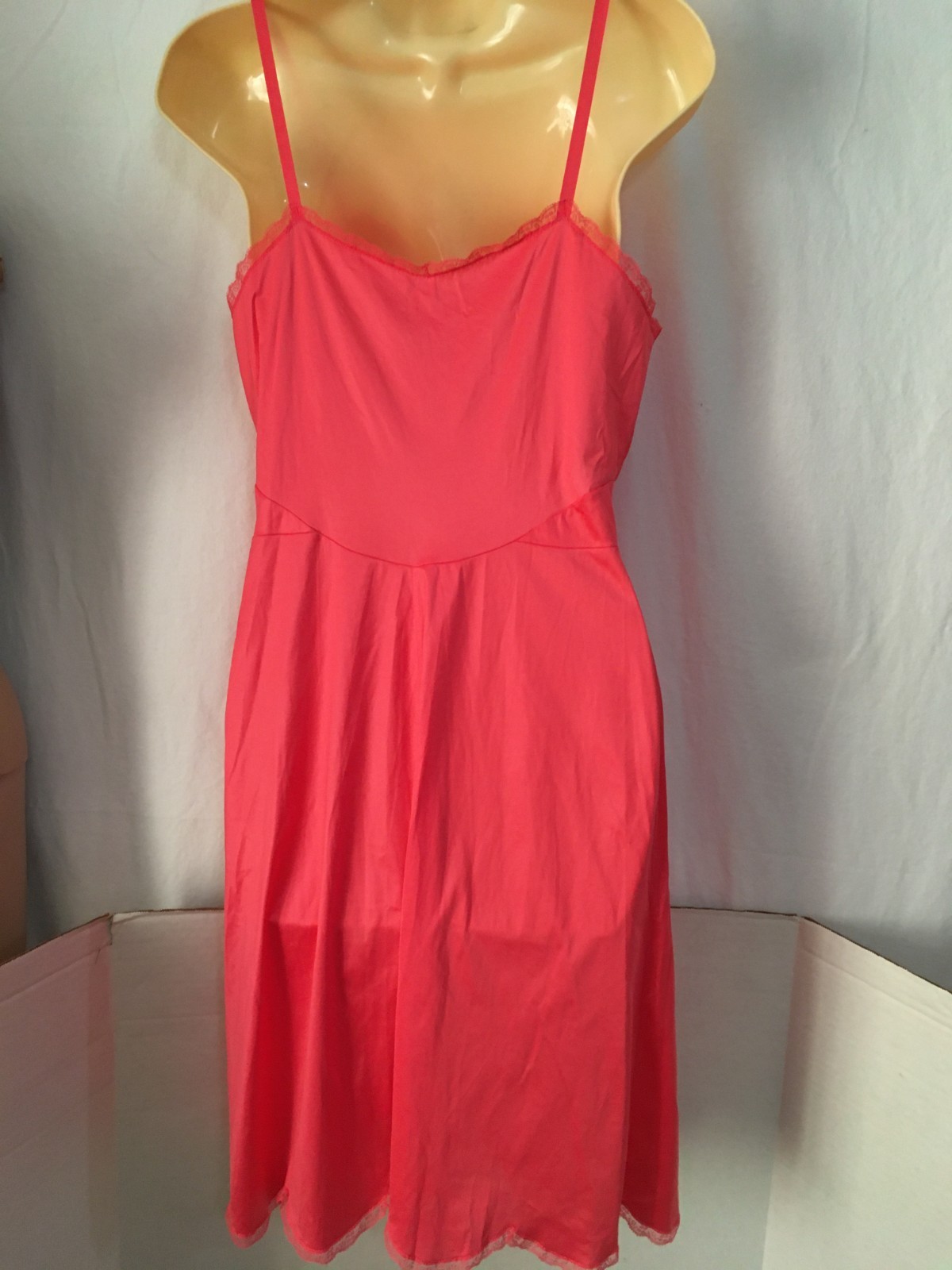 Vtg Floral Lace BUST Full Slip Dress SILKY SOFT Nylon Lacy VANITY FAIR 34 Pink