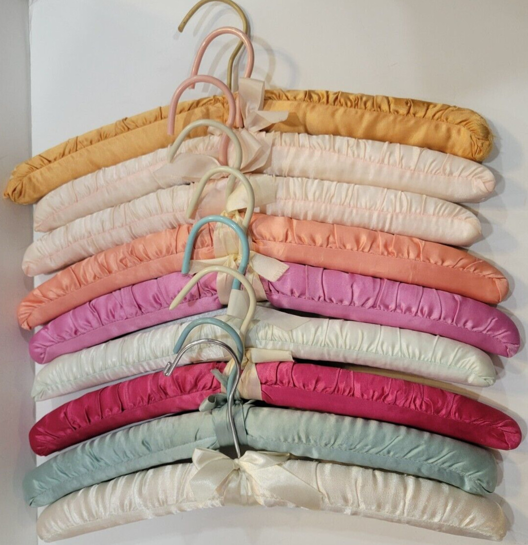 Set of 9 Satin Pastel Colors Padded Clothes Hangers 16 Wide