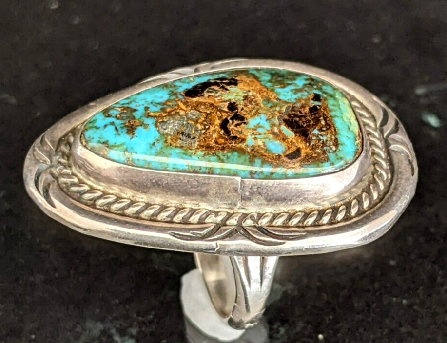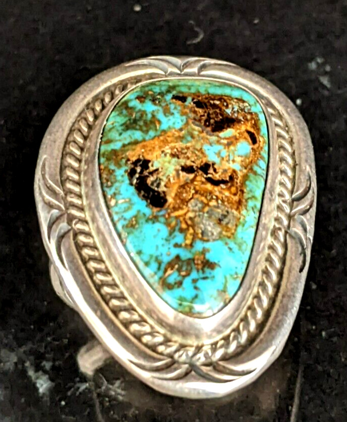 Vintage Native American Turquoise Sterling Silver Ring S-9 25mm x 15mm No Mark