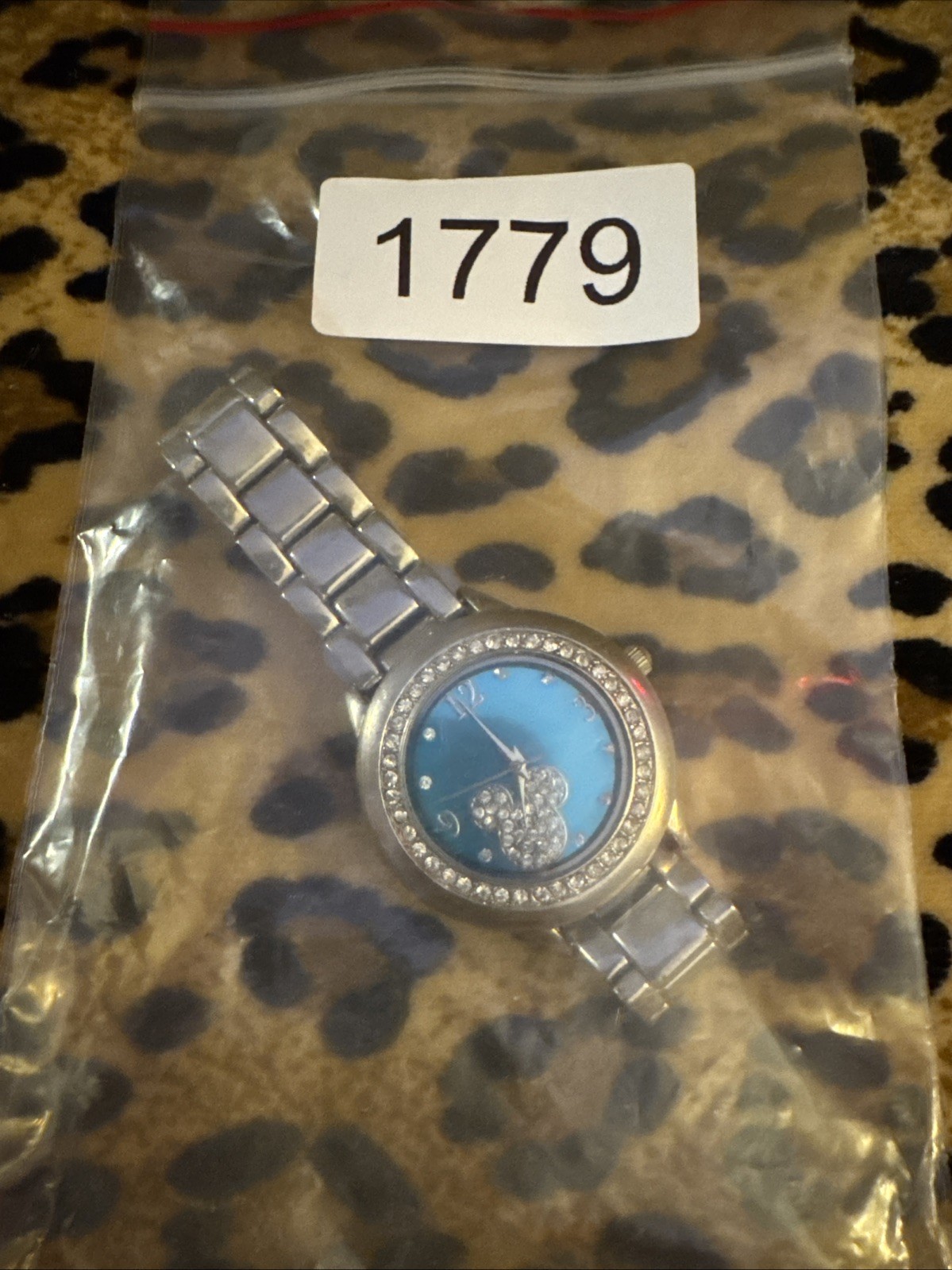 • Disney Accutime Mickey Mouse Silver Teal Stainless Metal Clasp Band 1779