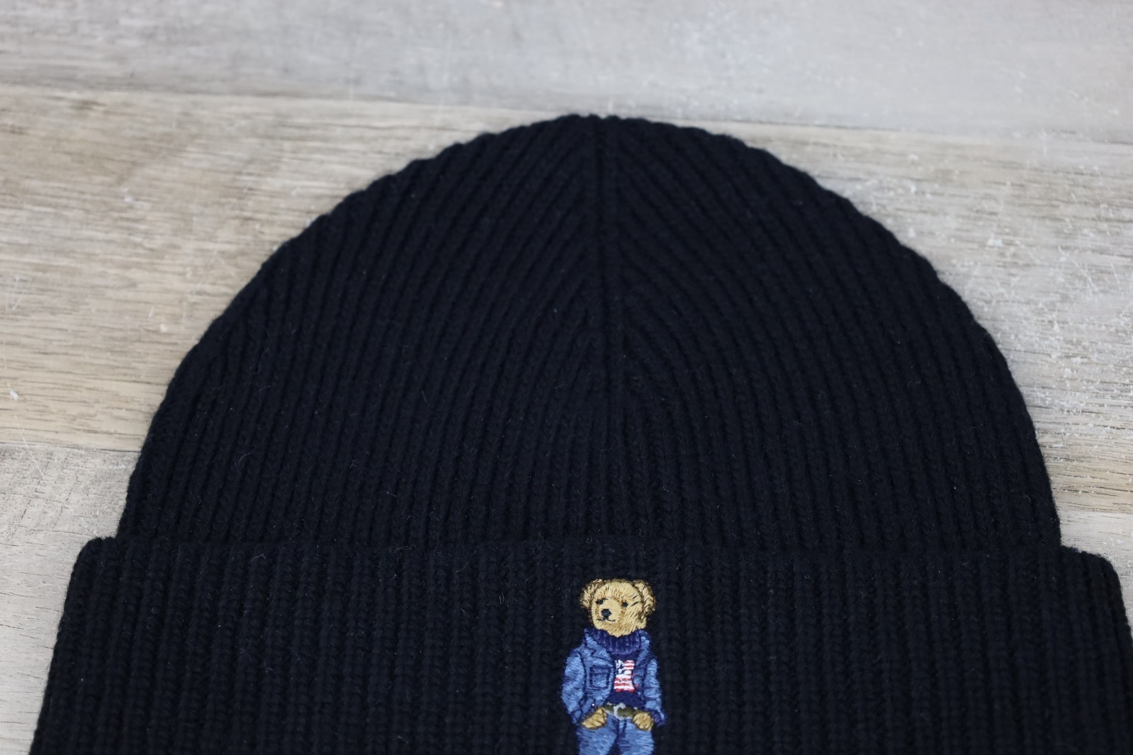 как выглядит Ralph Lauren Polo Teddy Bear Black Knit Beanie Hat NWT фото