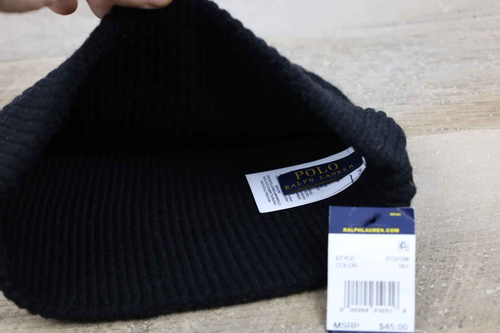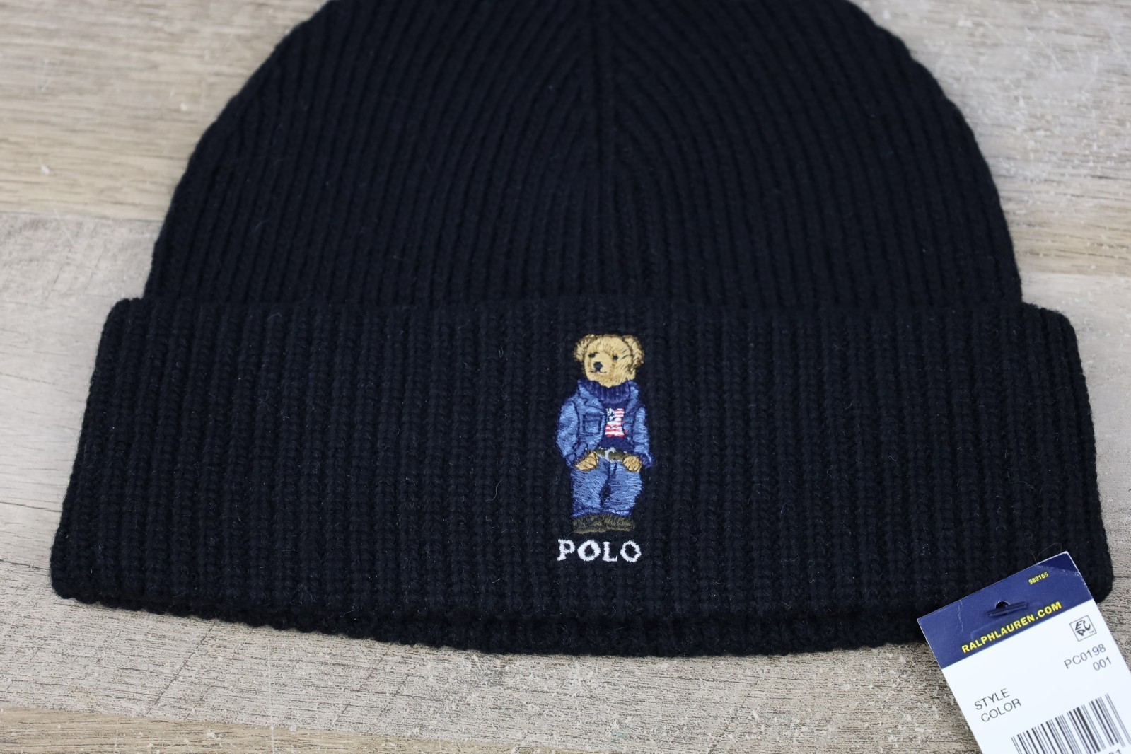 Ralph Lauren Polo Teddy Bear Black Knit Beanie Hat NWT