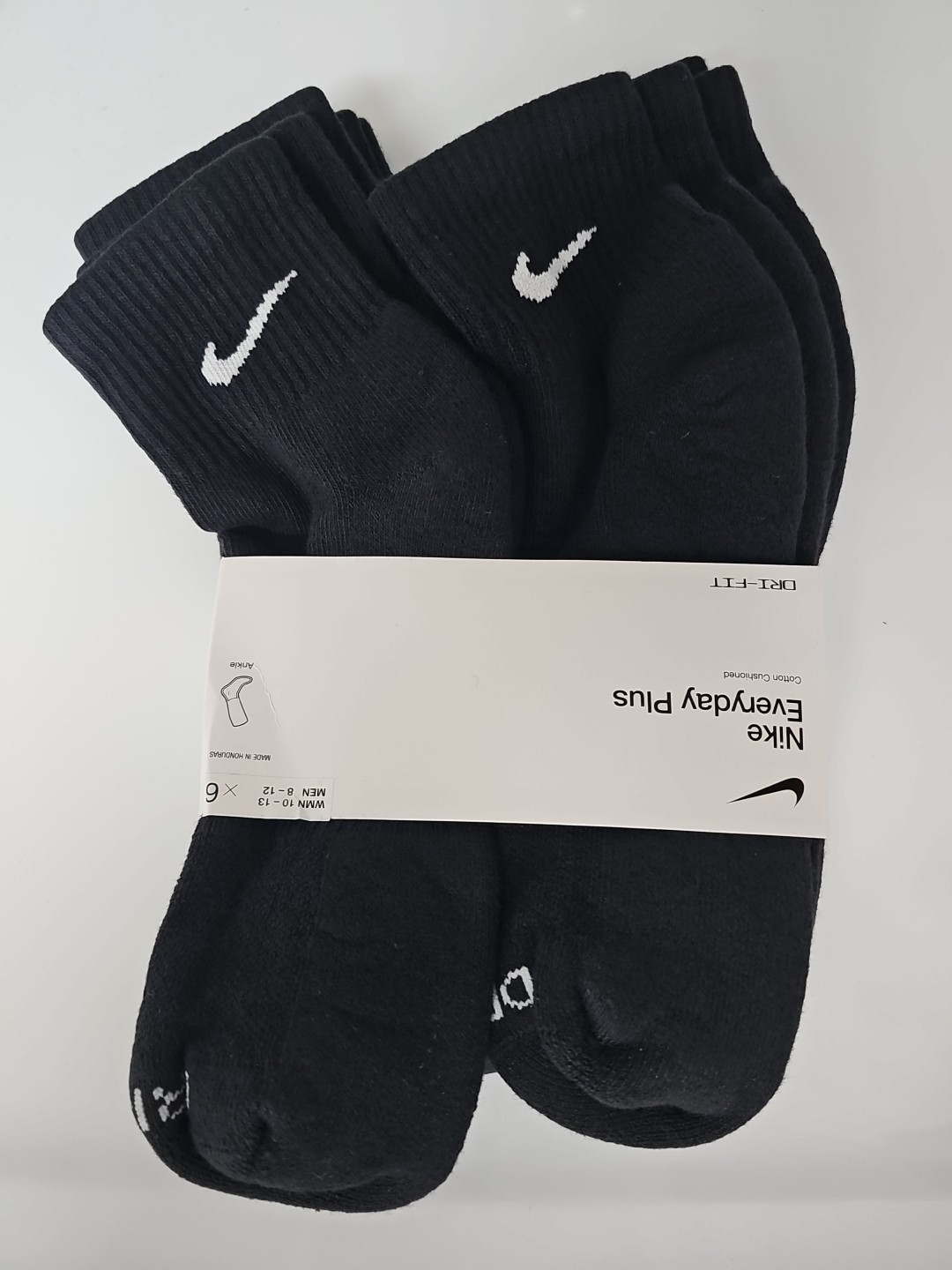 Nike Everyday Plus Dri-Fit 6-Pairs Unisex Size Large Black Ankle Socks