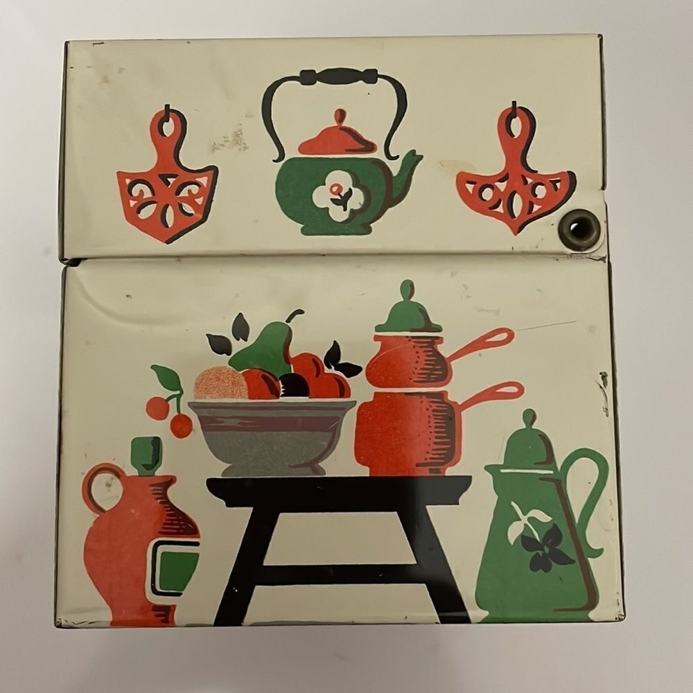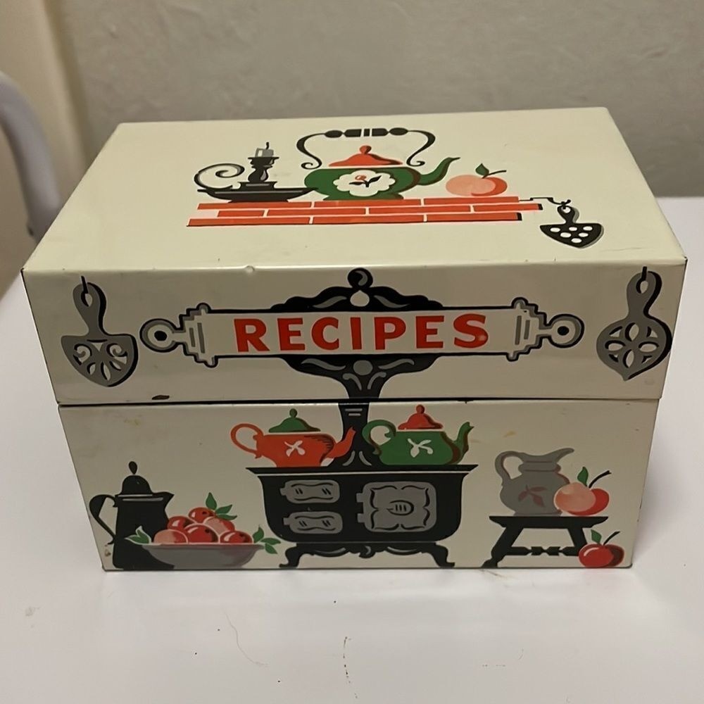 Vtg Kitschy mid Century Stylecraft tin recipe box