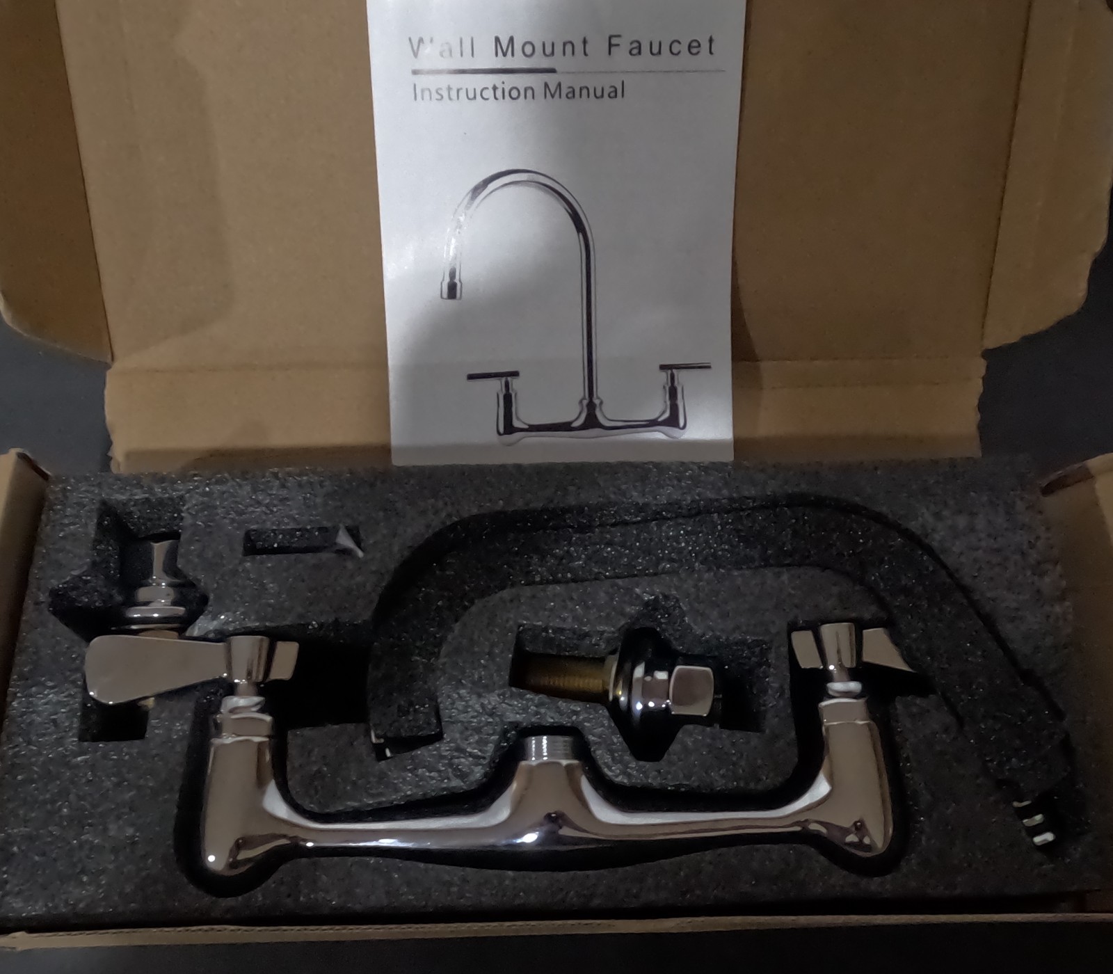 как выглядит Commercial Wall Mount Sink Faucet 8" Swivel Spout Restaurant Utility 360 Swivel фото